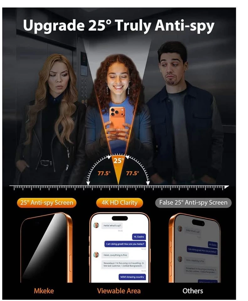116iPhone 17 Pro Max Privacy Screen Protector 3 Pack 25° Anti Spy 9H+ Tempered Glass Military-Grade Drop Protection Easy Installation Shockproof Full Edge Coverage 6.9 inch 2025