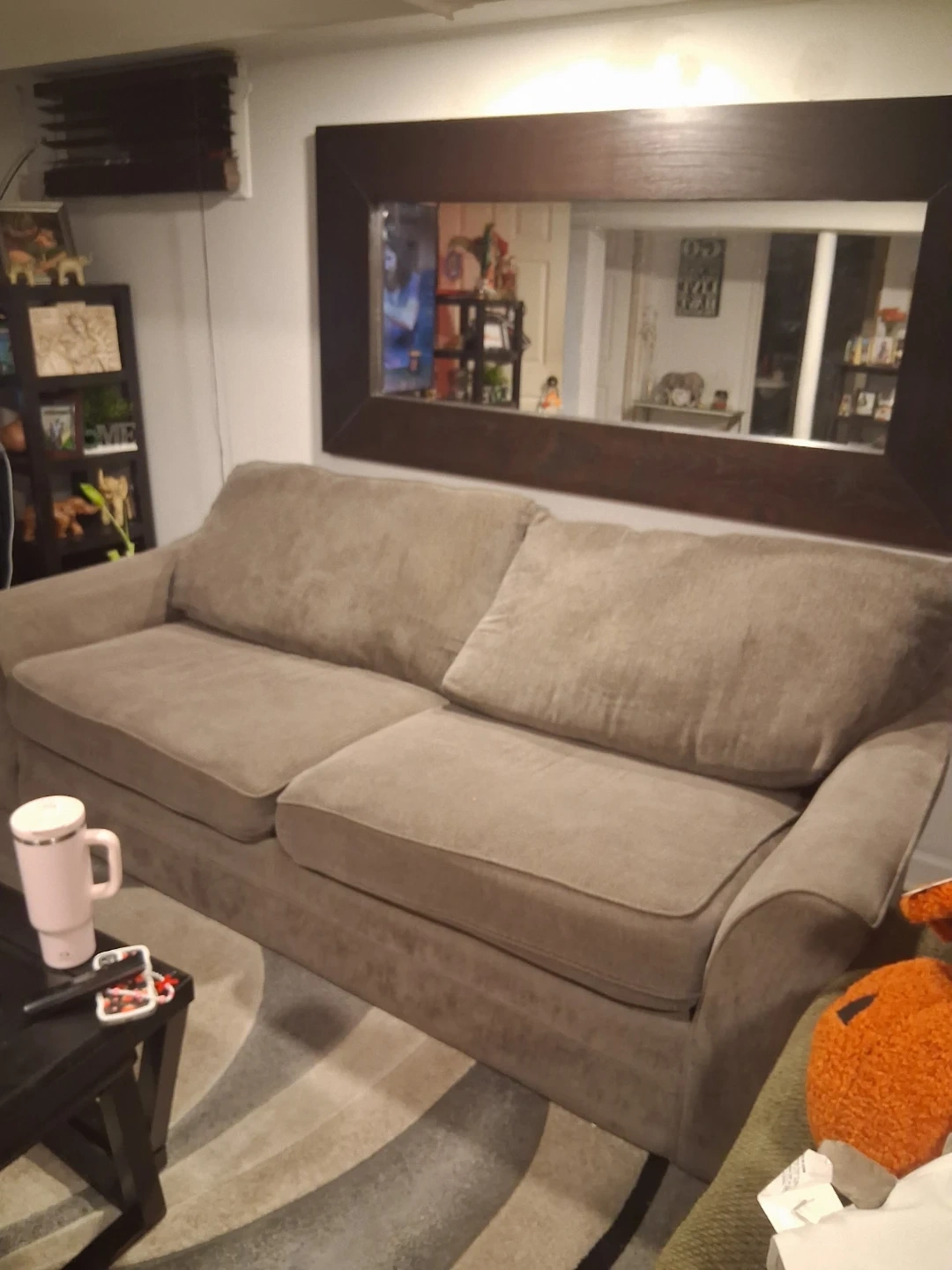 Selling a comfortable sofa in a neutral beige color! It's perfect for a living room or den. The sofa is in good condition and ready for a new home. It offers a cozy spot to relax and unwind after a long day