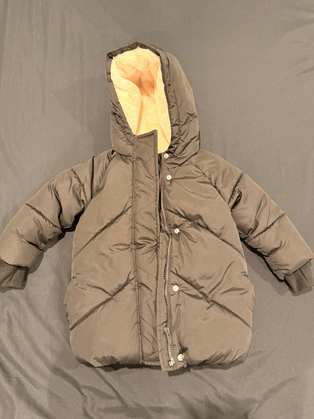 Here's a cozy Gap puffer jacket in size 2T! It's perfect for keeping your little one warm and snug during chilly days. The jacket features a soft, plush lining and a durable outer shell. It's in great condition and ready for a new home!