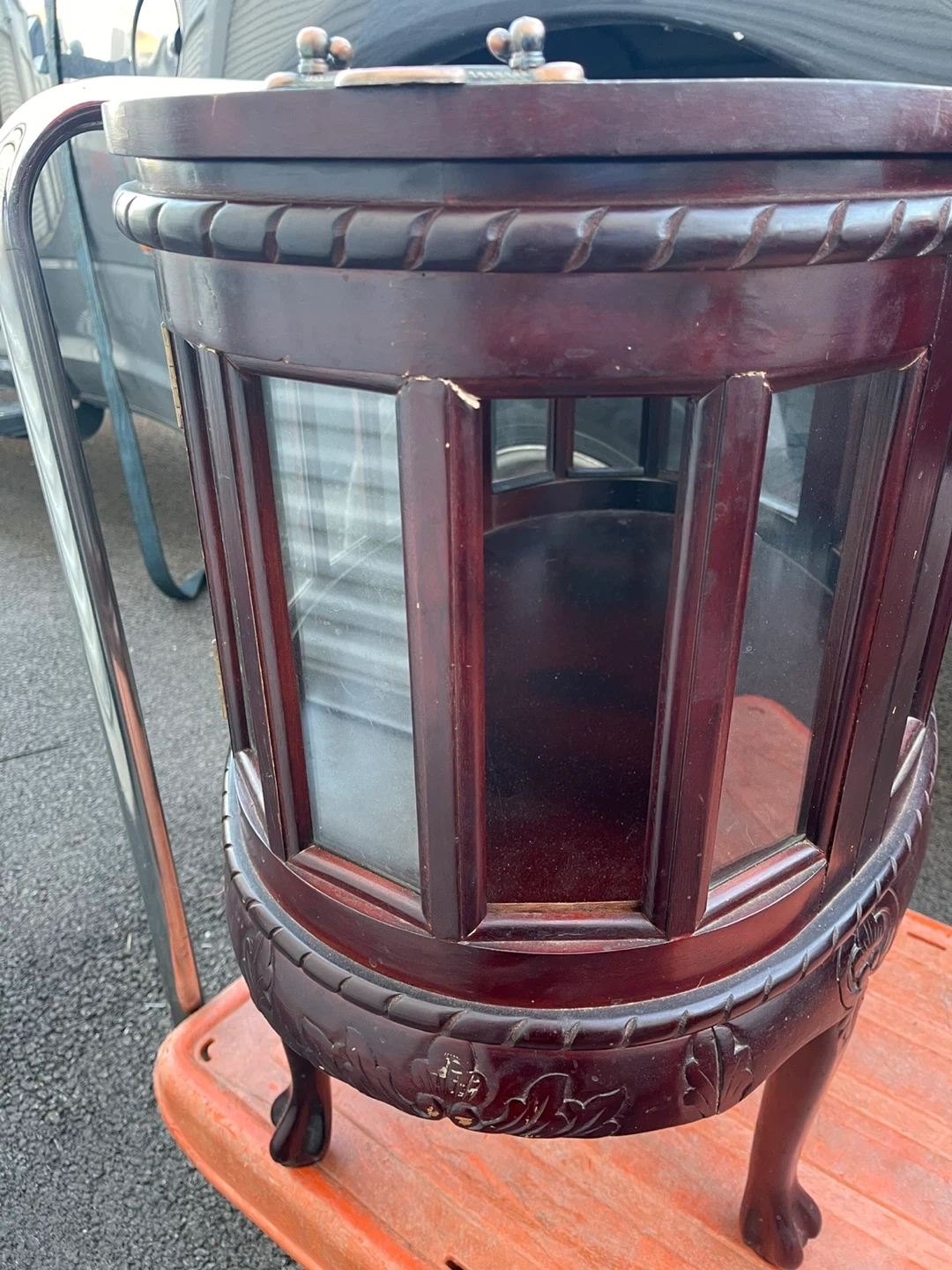 Vintage hand carved walnut cabinet with Oval tray top