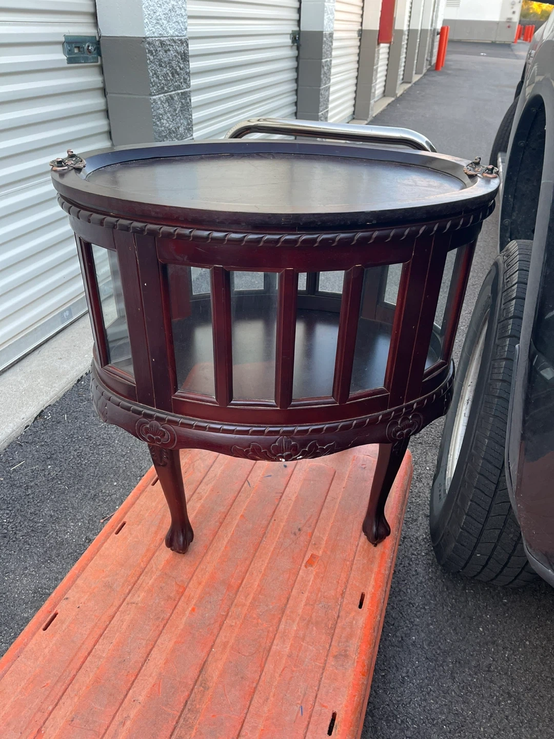Selling a vintage mahogany side table! It has an oval tray and a charming design. It's perfect for adding a touch of elegance to any room. There are some scratches on the top and 2 missing glass pieces, but overall it's in good condition. Asking $500 or best offer.