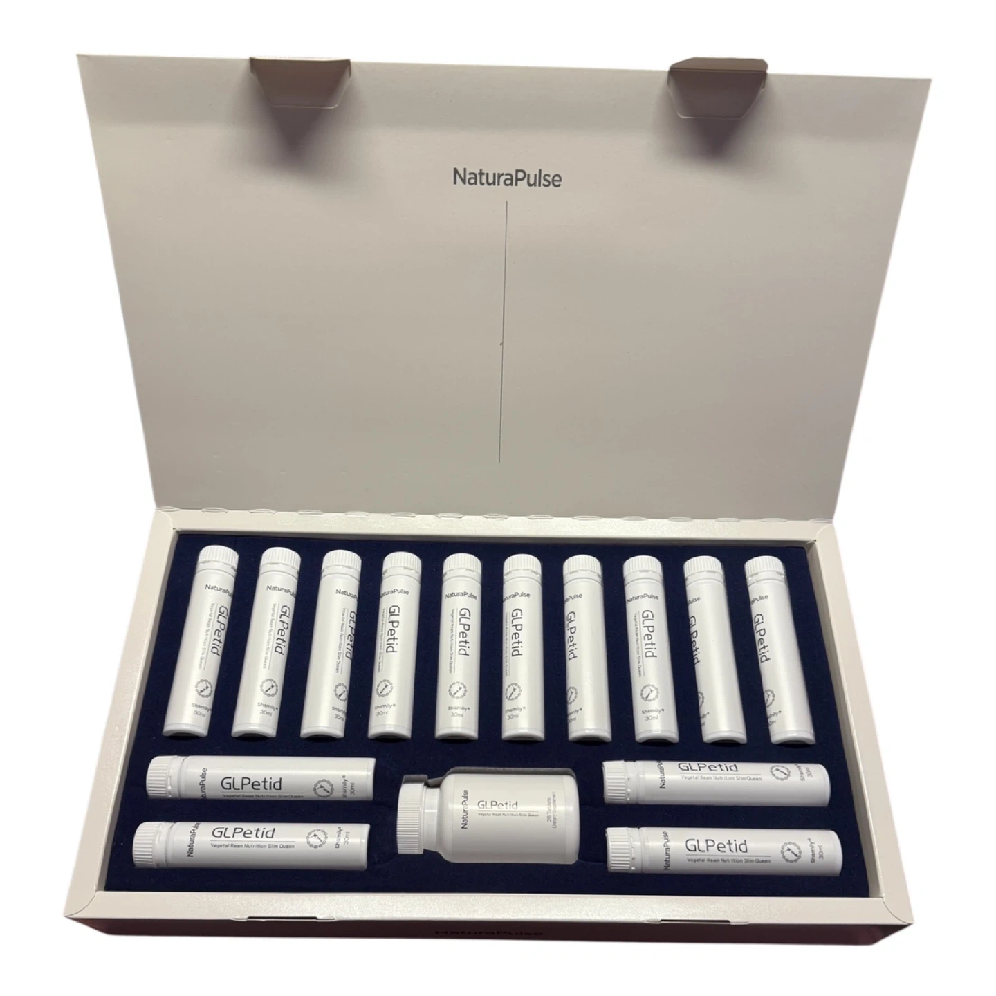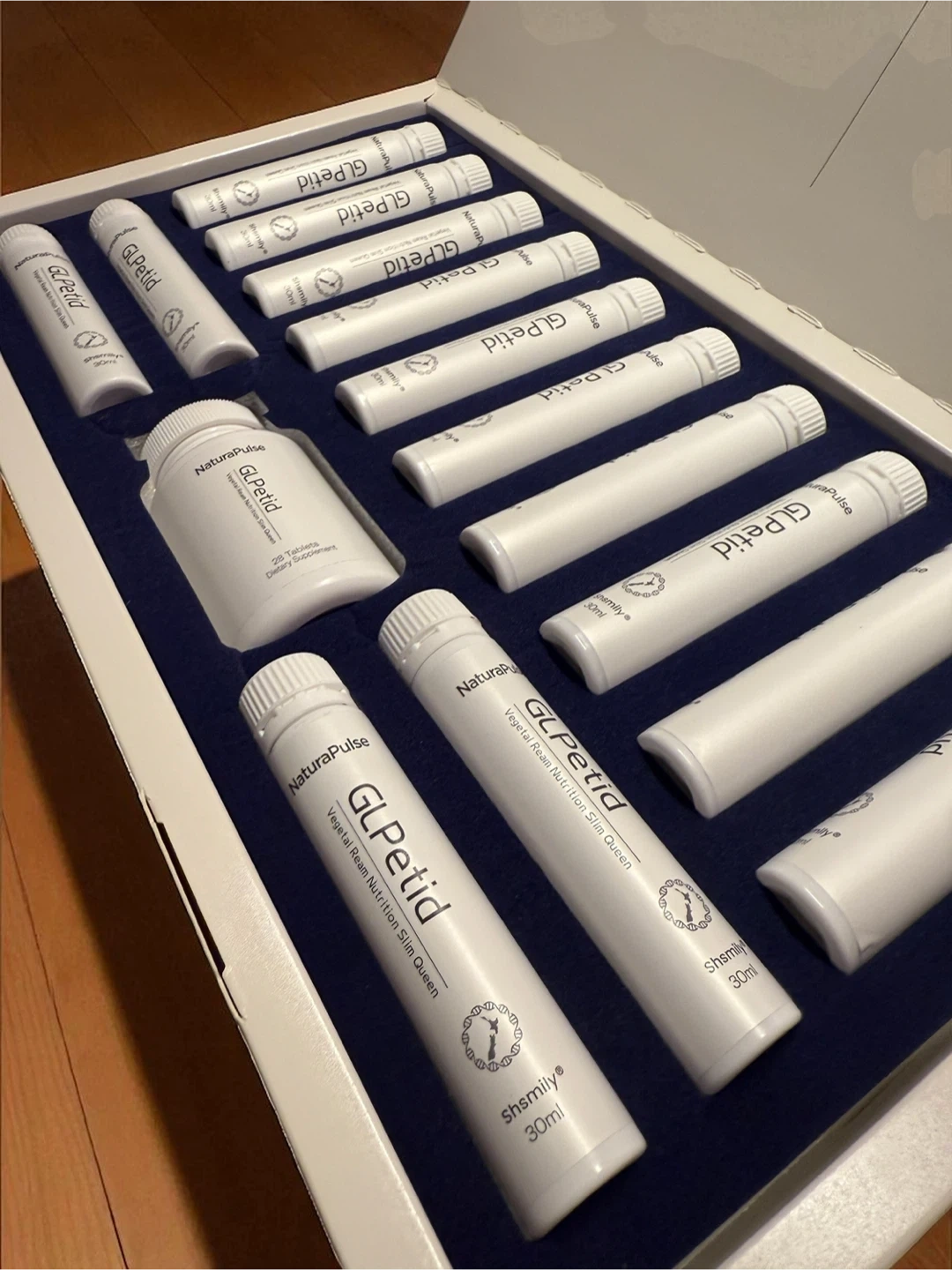 76Here's a NaturaPulse GLPetid Vegetal Ream Nutrition Slim Queen set! It comes in its original box. This is a dietary supplement with mulberry leaf extract and organic green yerba mate extract. Each bottle contains 30ml of the GLPetid drink. There are also 28 tablets in the set. Feel free to ask any questions!