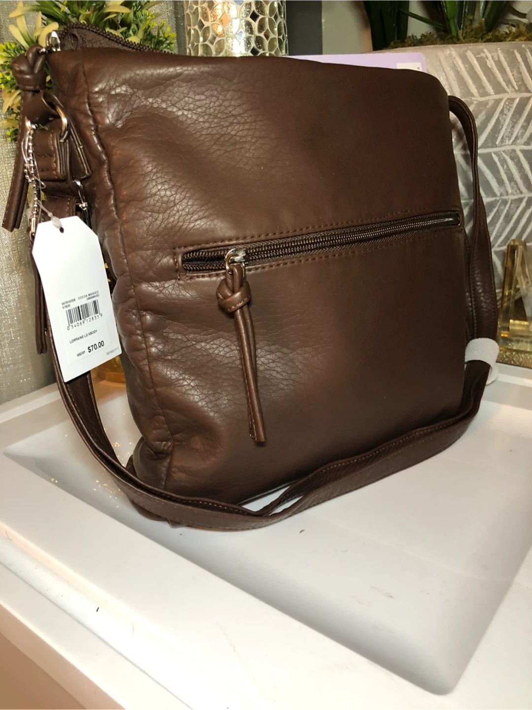 Selling a brown MultiSac crossbody bag! It's in great condition and perfect for everyday use. It features multiple zippered compartments to keep your belongings organized and secure