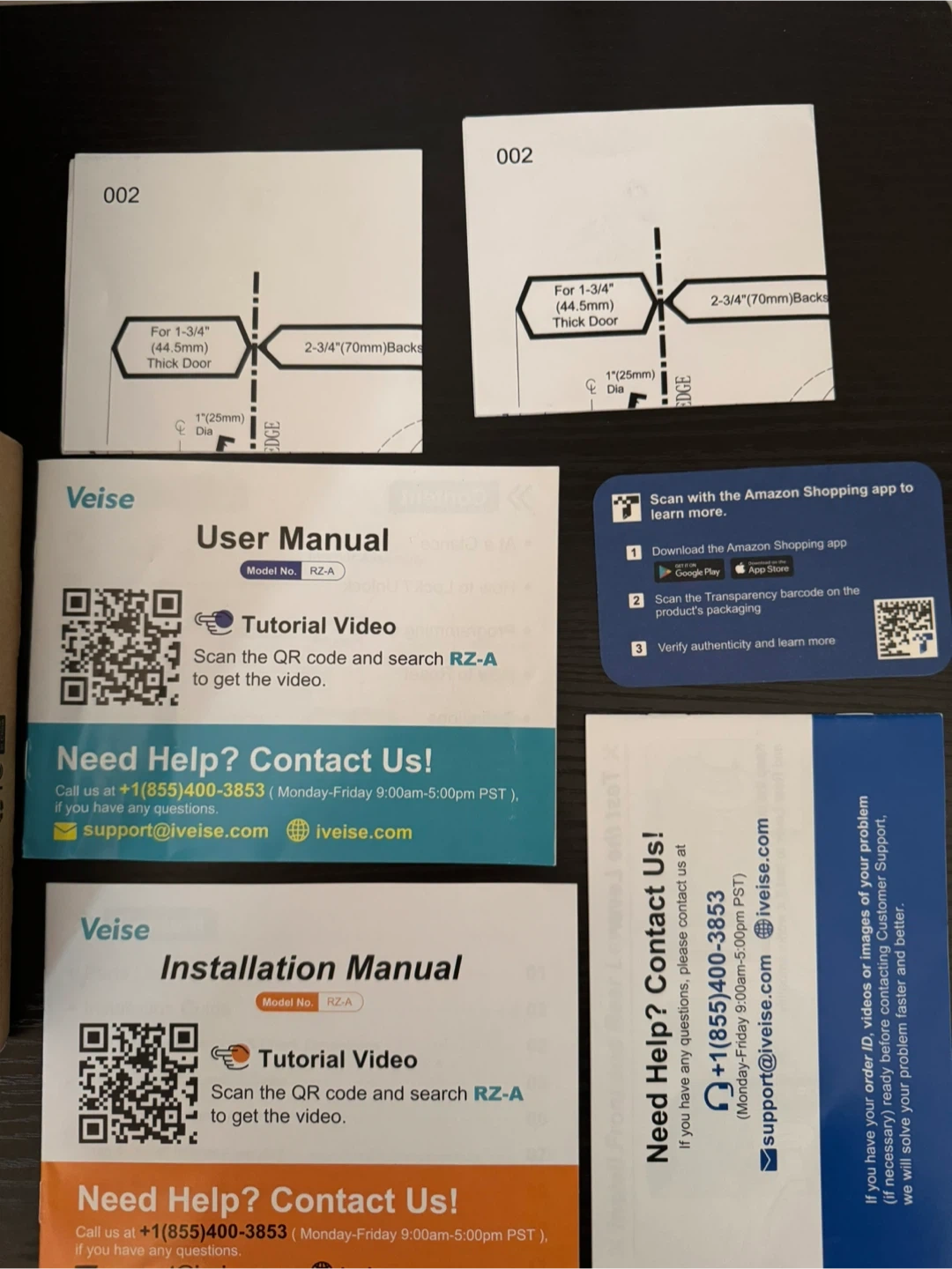 Selling a Veise RZ-A Keypad Digital Deadbolt and a Lever 801. It comes with the user manual and installation manual. Also included is a tutorial video to scan the QR code and search RZ-A to get the video. It is suitable for 1-3/4" (44.5mm) thick doors and 2-3/4" (70mm) backsets