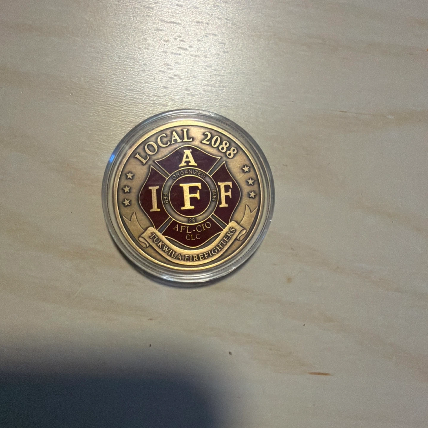 261Selling a Tukwila Firefighters Local 2088 challenge coin. It features the Tukwila Fire logo on one side and the IFF logo on the other. Great for collectors!