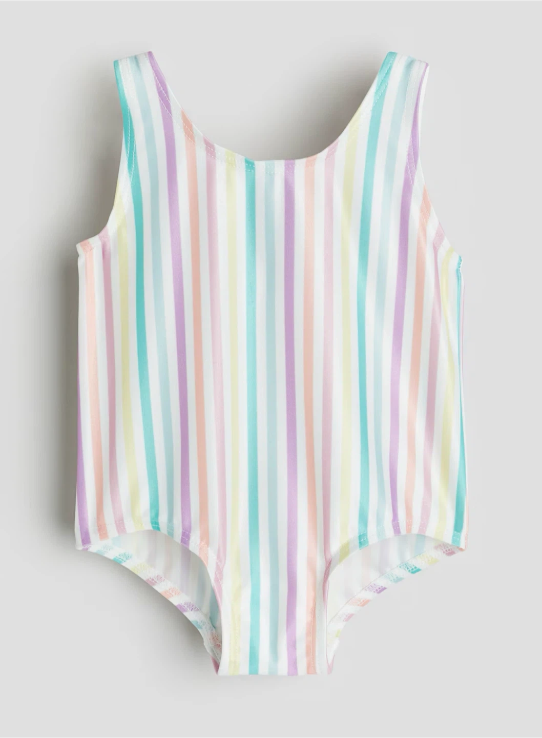 Here's a cute swimsuit from H&M! It features a colorful striped pattern. It's perfect for summer fun at the beach or pool