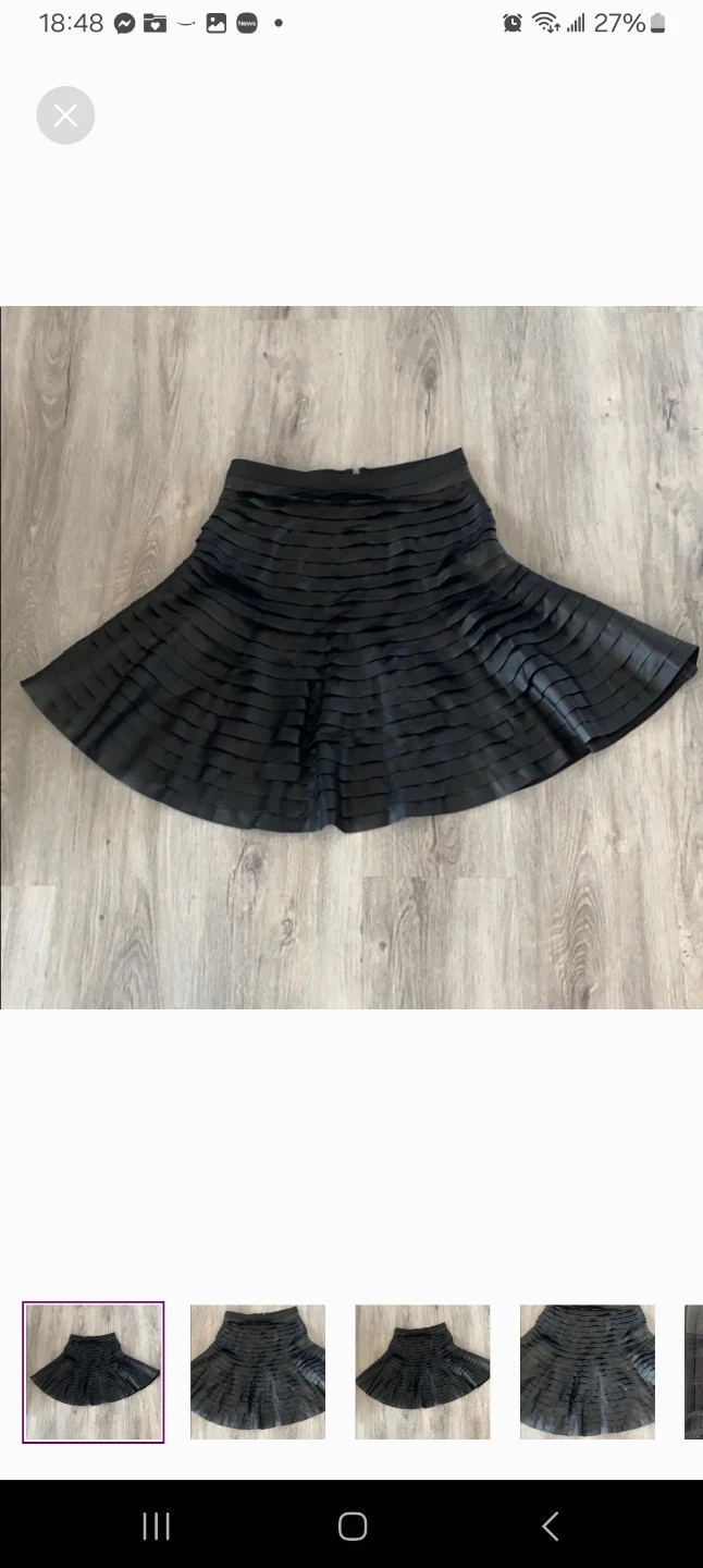 90Selling a BCBGMAXAZRIA black skirt in size XS. It's in great condition and ready for a new home! The skirt has a unique design and is made of a comfortable material. Perfect for any occasion!