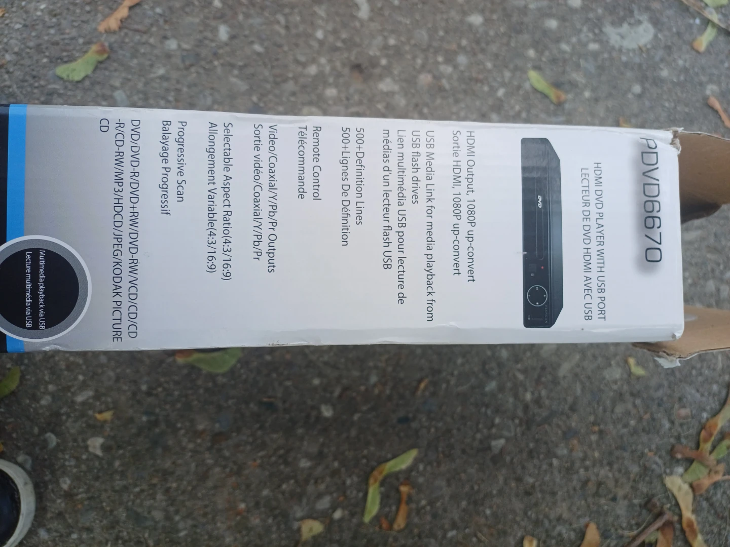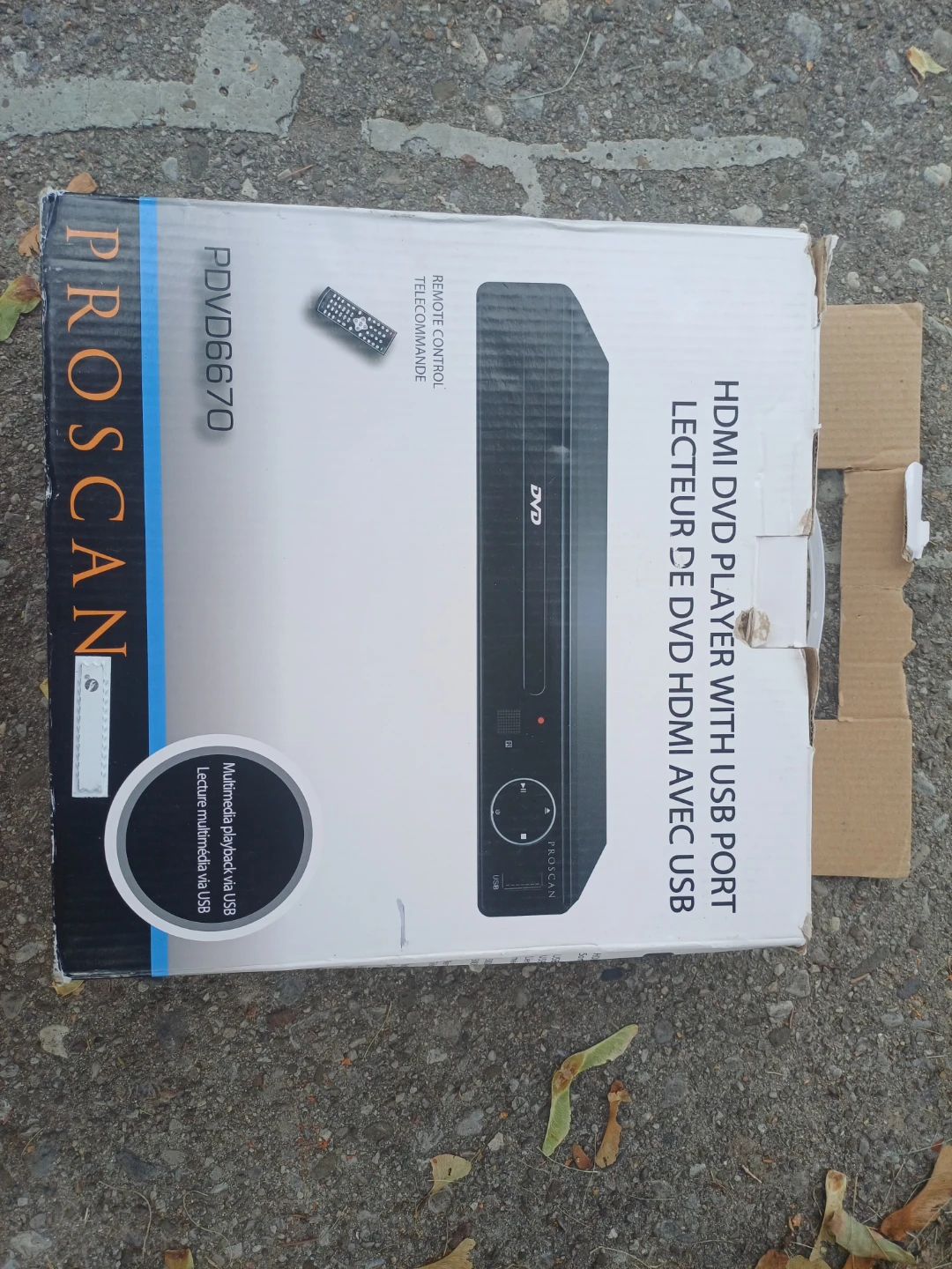 NEW IN BOX Proscan PDVD6670 HDMI DVD player with USB port. It's still in its original packaging. Features include: - HDMI Output, 1080P up-convert - Sortie HDMI, 1080P up-convert - USB Media Link for media playback from USB flash drives - Remote control