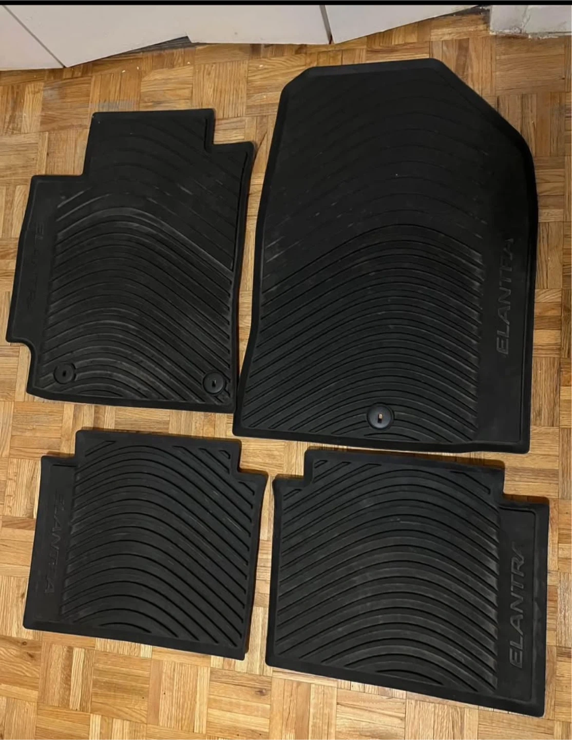 Selling a set of black floor mats for a Hyundai Elantra. They're in great shape and ready to keep your car clean!