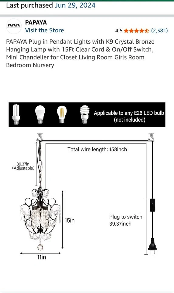 Plug in Pendant Lights with K9 Crystal Bronze Hanging Lamp with