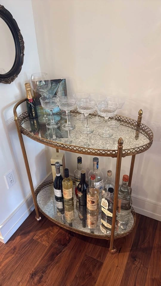 Antique / Vintage - Style Gold & Mirror Bar Cart