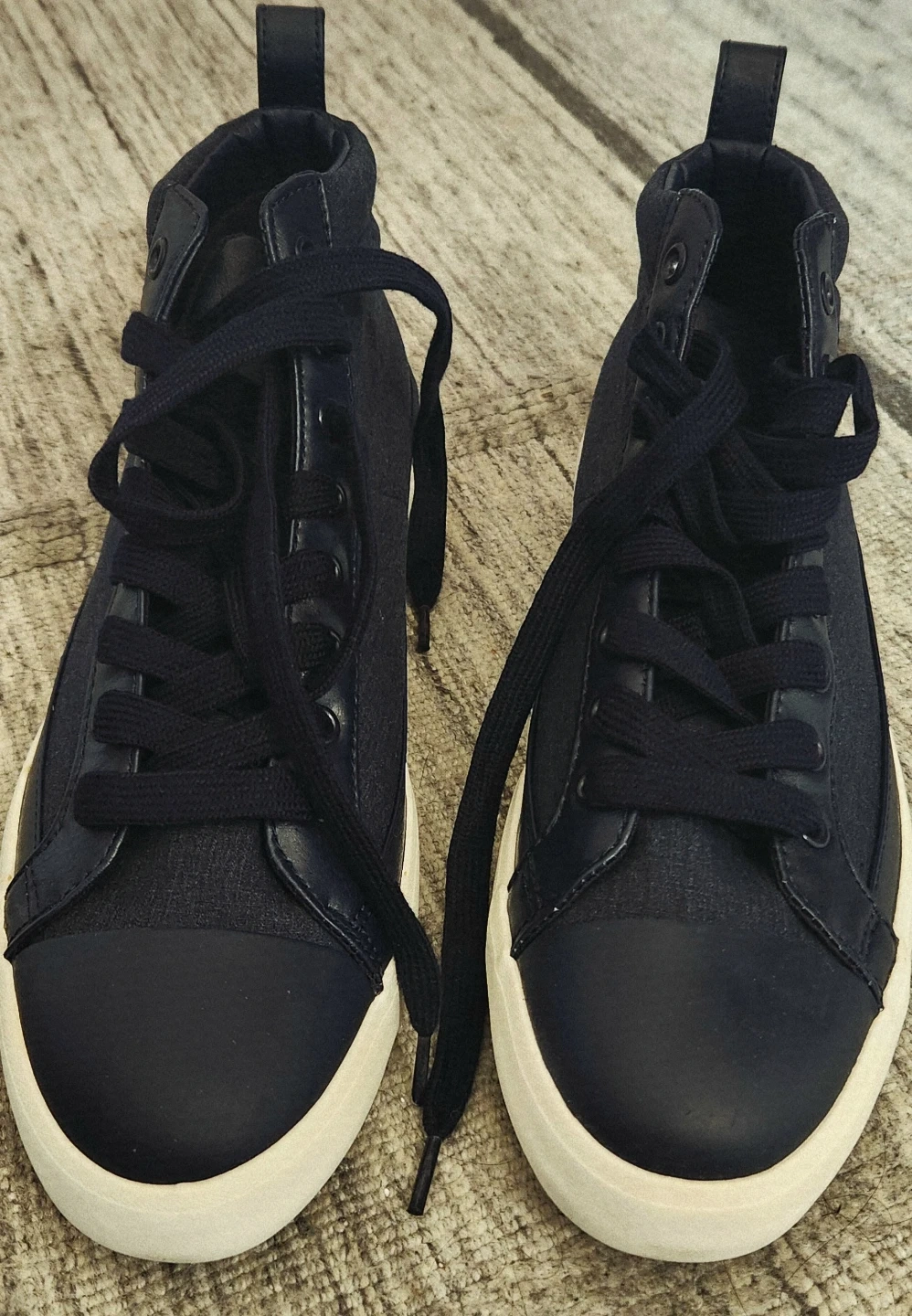 Selling a pair of Polo Ralph Lauren high-top sneakers in navy blue. They are in good condition and ready for a new home! They have a classic look with the Polo logo on the heel. Perfect for casual wear!