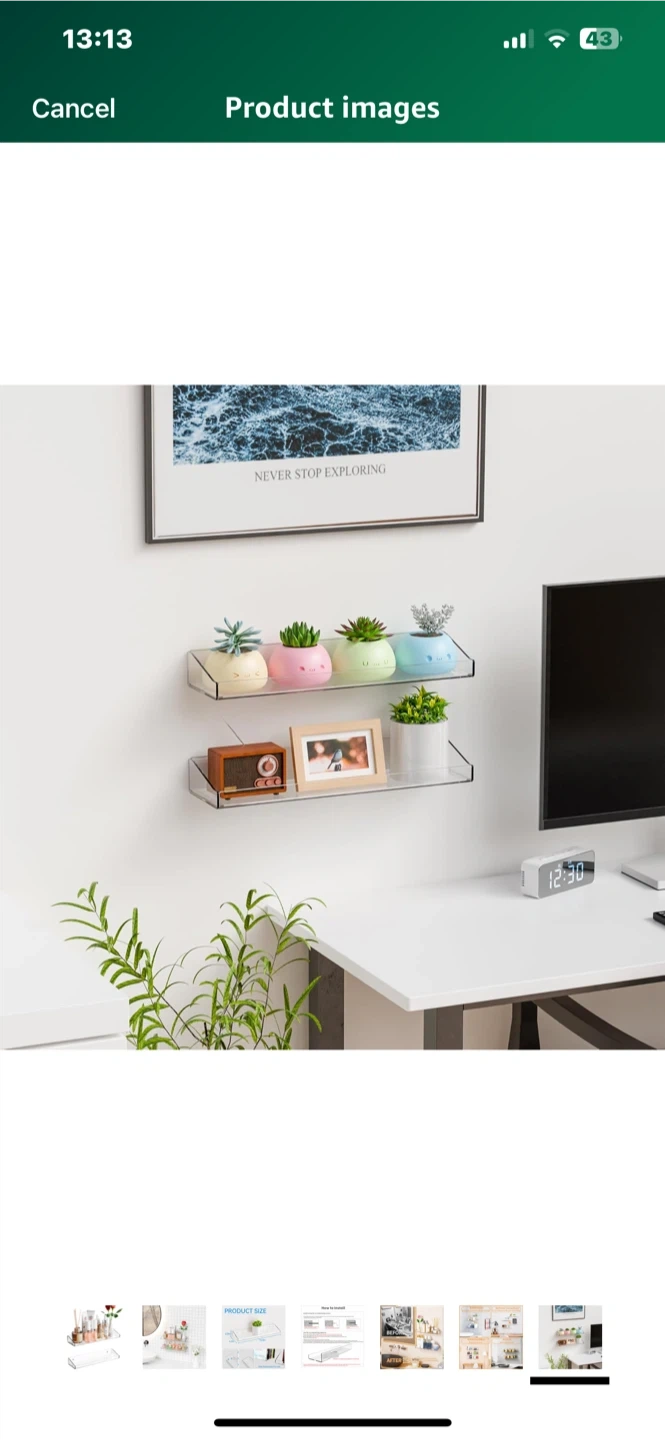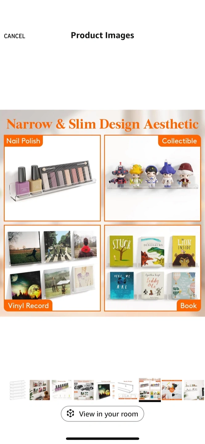 96This acrylic floating wall shelf is perfect for displaying your favorite items! It's a narrow and slim design with a clean aesthetic. The shelf measures 15 inches in length, 4.2 inches in width, and 2 inches in height. It is side detachable for use