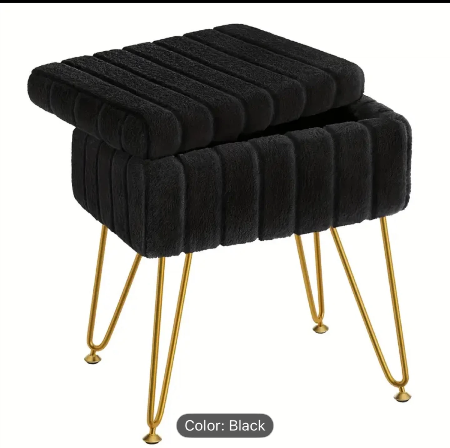 Check out this stylish black ottoman storage stool! It's a great way to add some extra seating and storage to your space. The gold legs give it a modern touch, and the soft material makes it super comfy