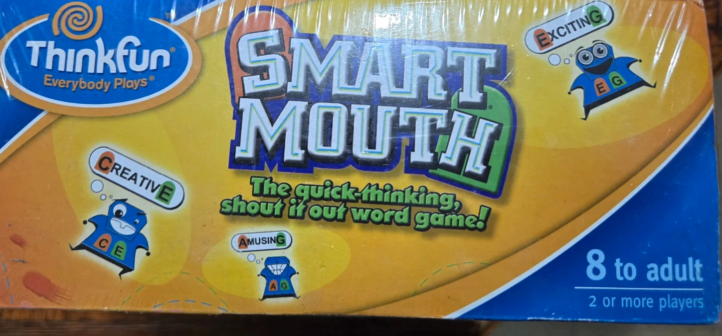 Selling a Thinkfun Smart Mouth game! It's a quick-thinking, shout it out word game that's fun for 2 or more players, ages 8 to adult. Includes letter getter tiles and end letter tiles, plus instructions for various game variations. Get ready to shout it out!