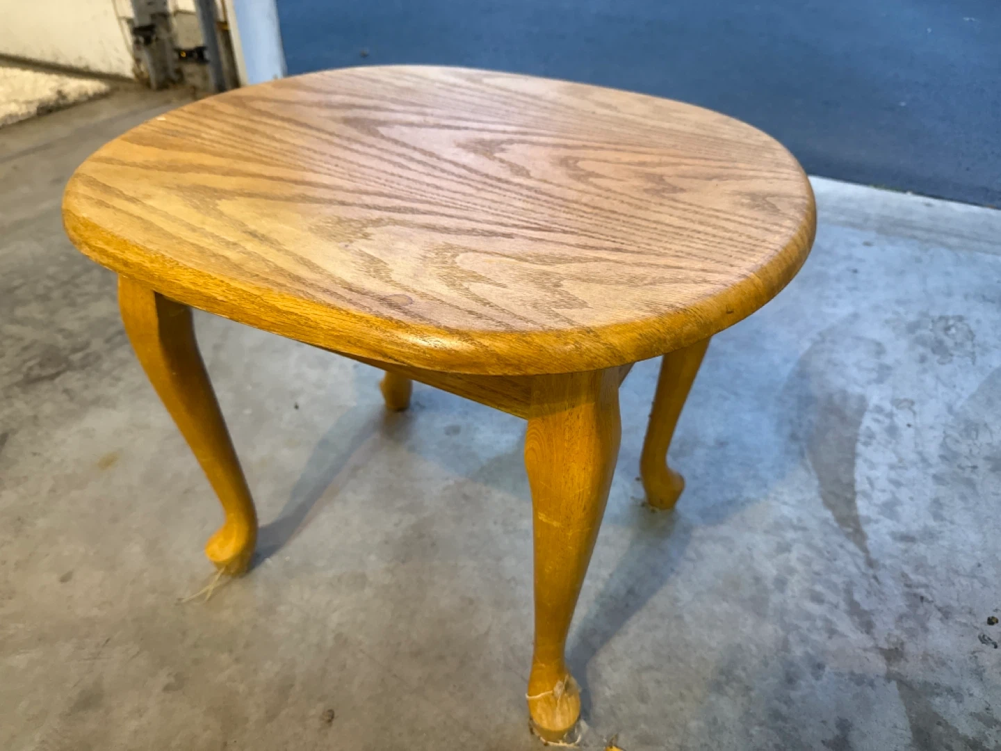10Selling a charming vintage wooden side table! It has a lovely, classic design with elegantly curved legs and a smooth, round top. Perfect for adding a touch of warmth and character to any room
