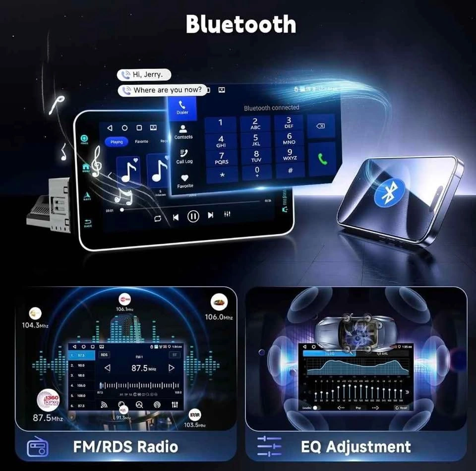 4G+64G Andriod Single Din 9-Inch Touchscreen Car Stereo with Wireless Carplay Android Auto, Car Radio Rotatable Screen 1 Din Bluetooth Mirror Link GPS WiFi, FM/RDS EQ with Backup Camera+Phone Holder