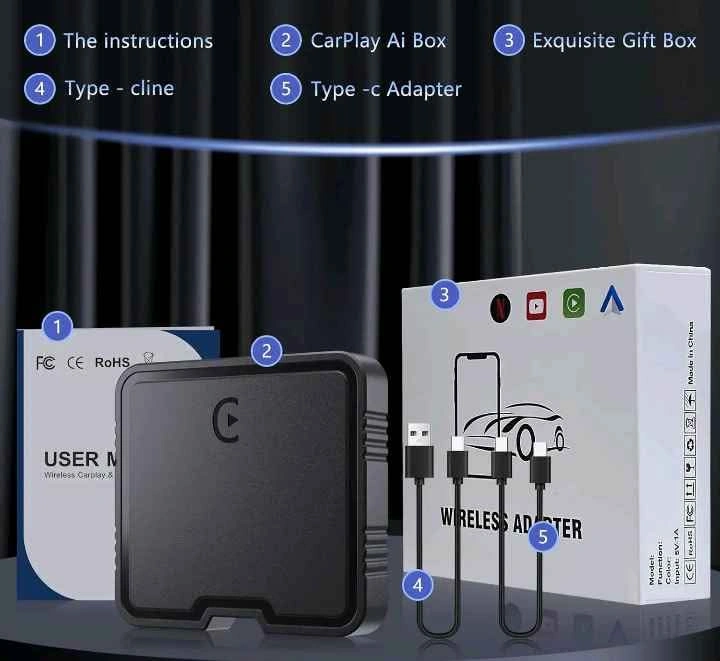 10Adaptador inalámbrico Carplay con Netflix YouTube TF Card Plug & Play, adaptador inalámbrico AI Box Car Play y Android Auto Dongle fácil de configurar, se adapta a autos CarPlay con cable OEM