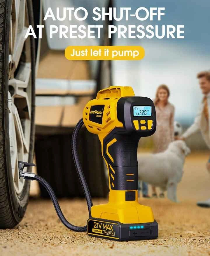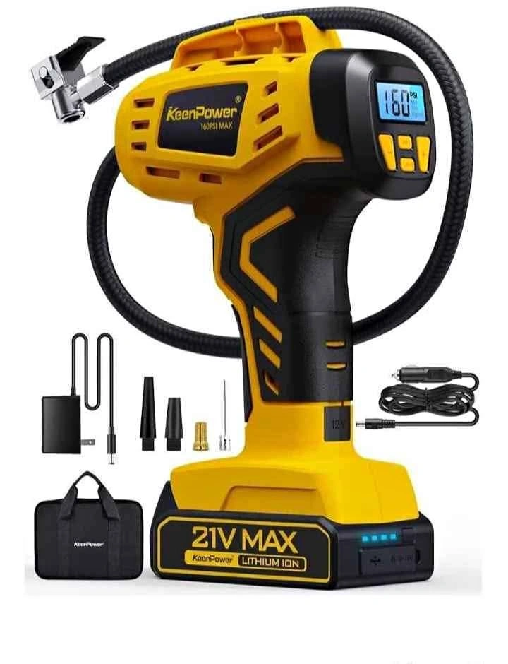 Compresor de aire portátil para inflador de neumáticos, 2 veces más rápido, inflador de neumáticos de mano de 160 PSI alimentado por batería recargable de 21 V