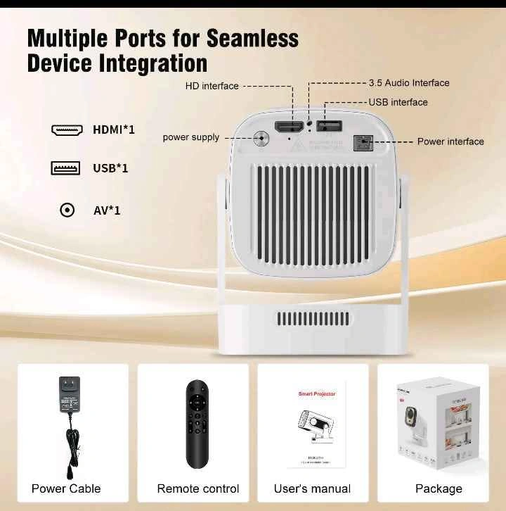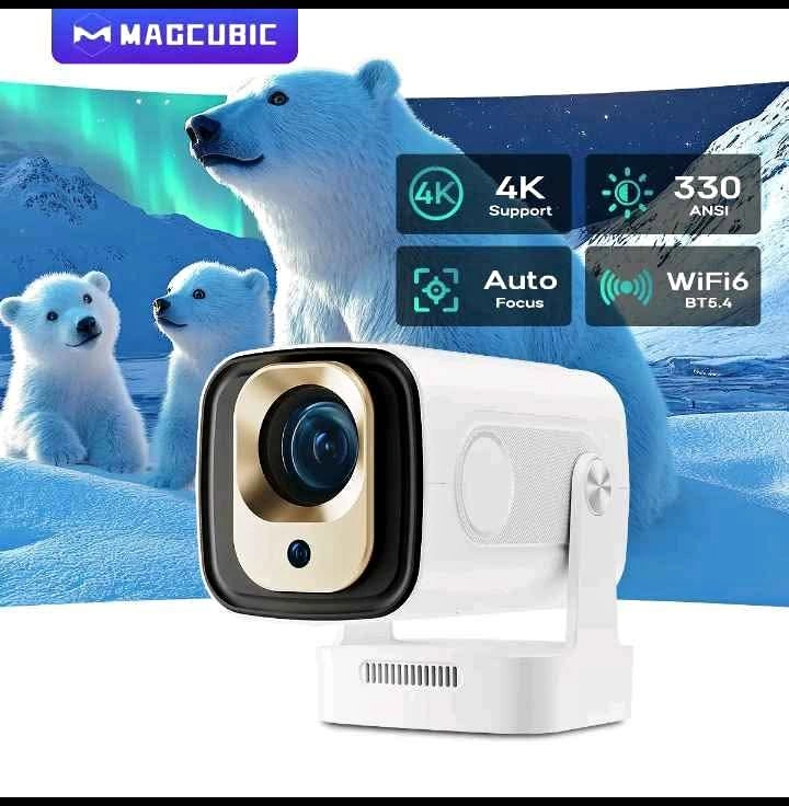 10Mini proyector inteligente Magcubic con soporte 4K, portable projector with WiFi and Bluetooth, 5W speaker, built-in apps, voice control, movie projector.