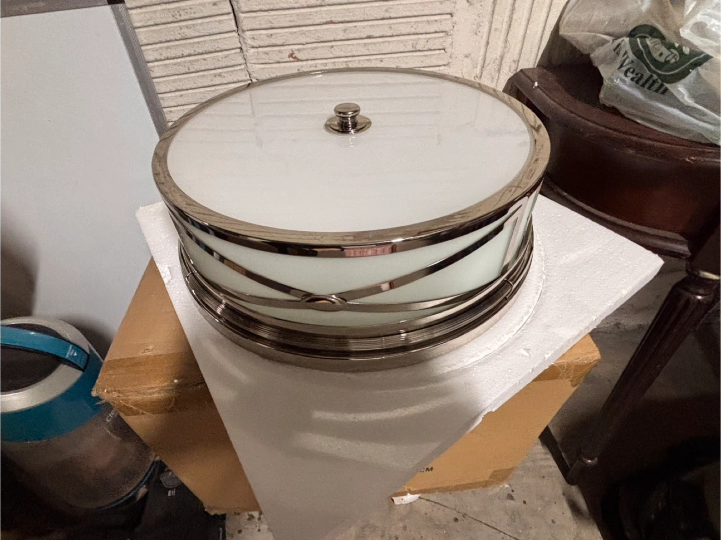 Selling a Robert Abbey S1985 flush mount light with white glass shades and a polished nickel finish! The box is included and the measurements are 44x44x33 cm