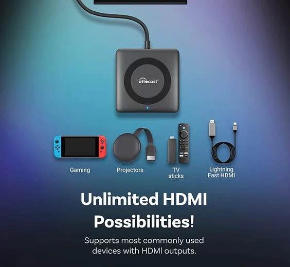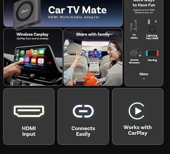 10CarPlay OTTOCAST Car TV Mate Max, 2025 Fire TV Stick Converter & Screen Mirroring Adapter for Wireless CarPlay/Android Auto, HD HDMI Car Adapter Cast Video/Game, Works for Wired CarPlay Cars