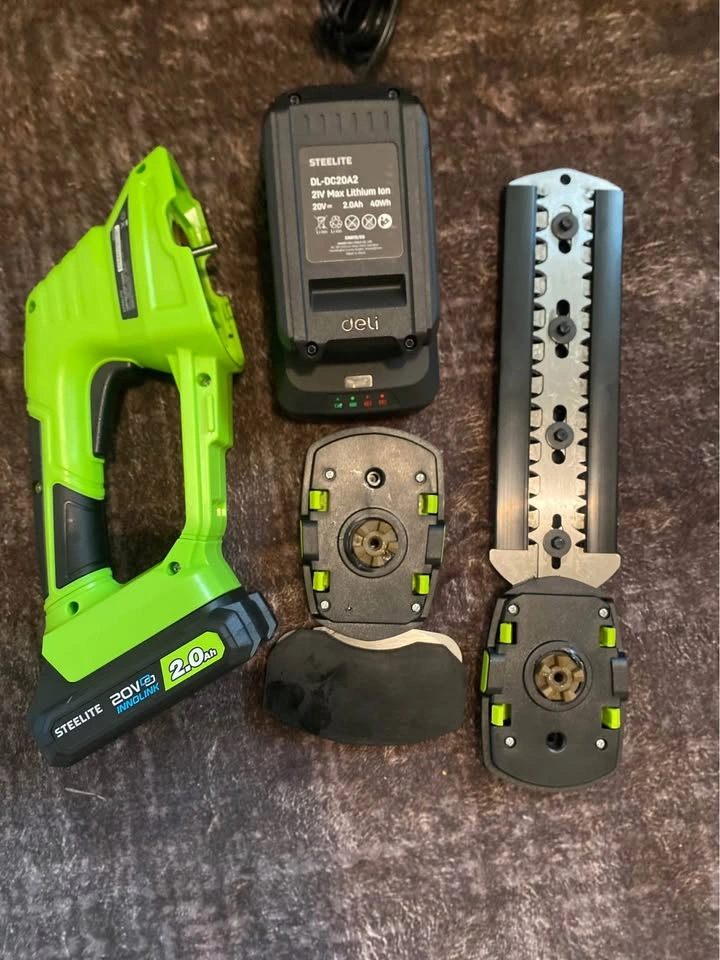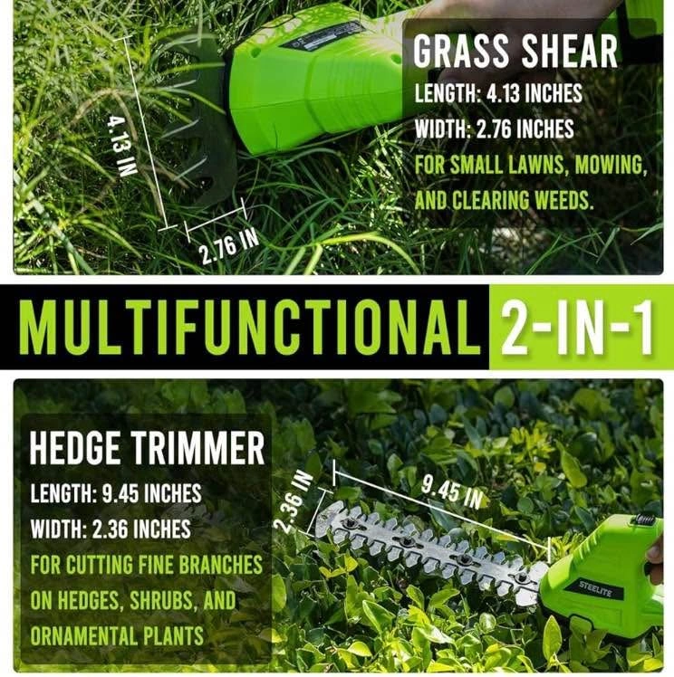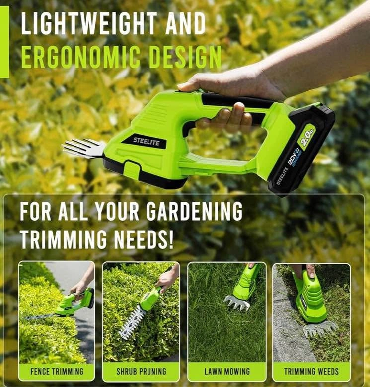 0STEELITE Hedge Trimmer Cordless, 21V Electric Mini Grass Trimmer for Lawn Care, 2 x 2.0Ah Batteries, Fast Charger Included