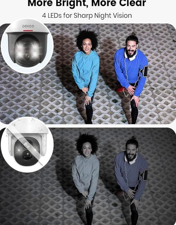 10Panoramic Pan Tilt Zoom, Auto Motion Tracking, True 2K, Color Night Vision, Spotlight, 2-Way Talk Dekco App
