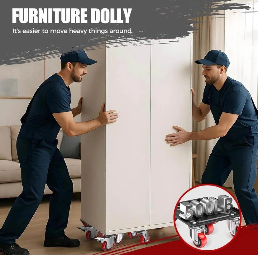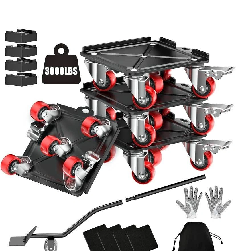 10Heavy Duty 3000LBS Furniture Dolly & Movers with 5 Wheels & Brake - 360° Rotating Moving Dolly for Furniture, Piano, Appliances - 6.4 Inch Non-Slip Sliders, Red