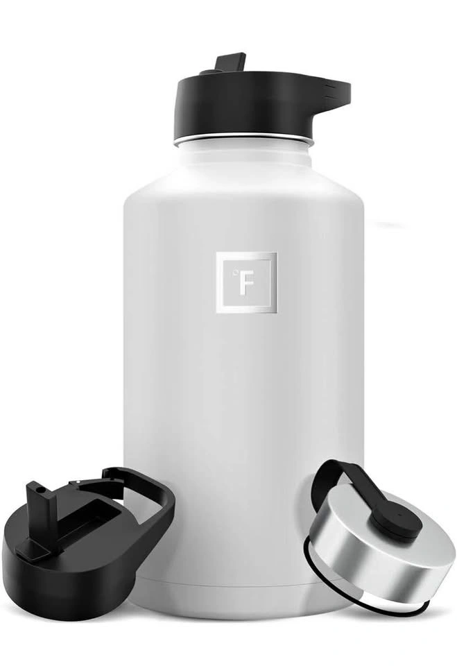 10IRON °FLASK Camping & Hiking Hydration Flask with 3 Lids - Stainless Steel, Double Walled & Vacuum Insulated Water Bottle - Leak Proof & BPA Free (Midnight Black, Straw - 64 oz