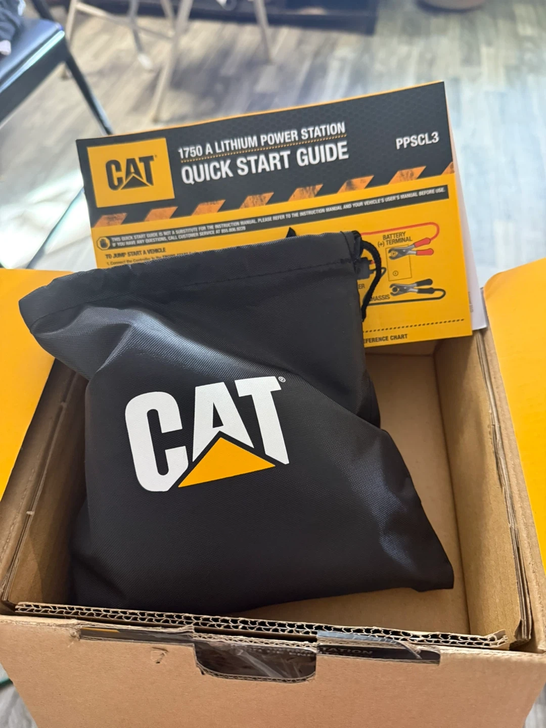 78Selling a brand new CAT 1750A Lithium Power Station. It's a quick start guide and power station all in one! Comes with a carrying bag and charging cables, all inside the original box.