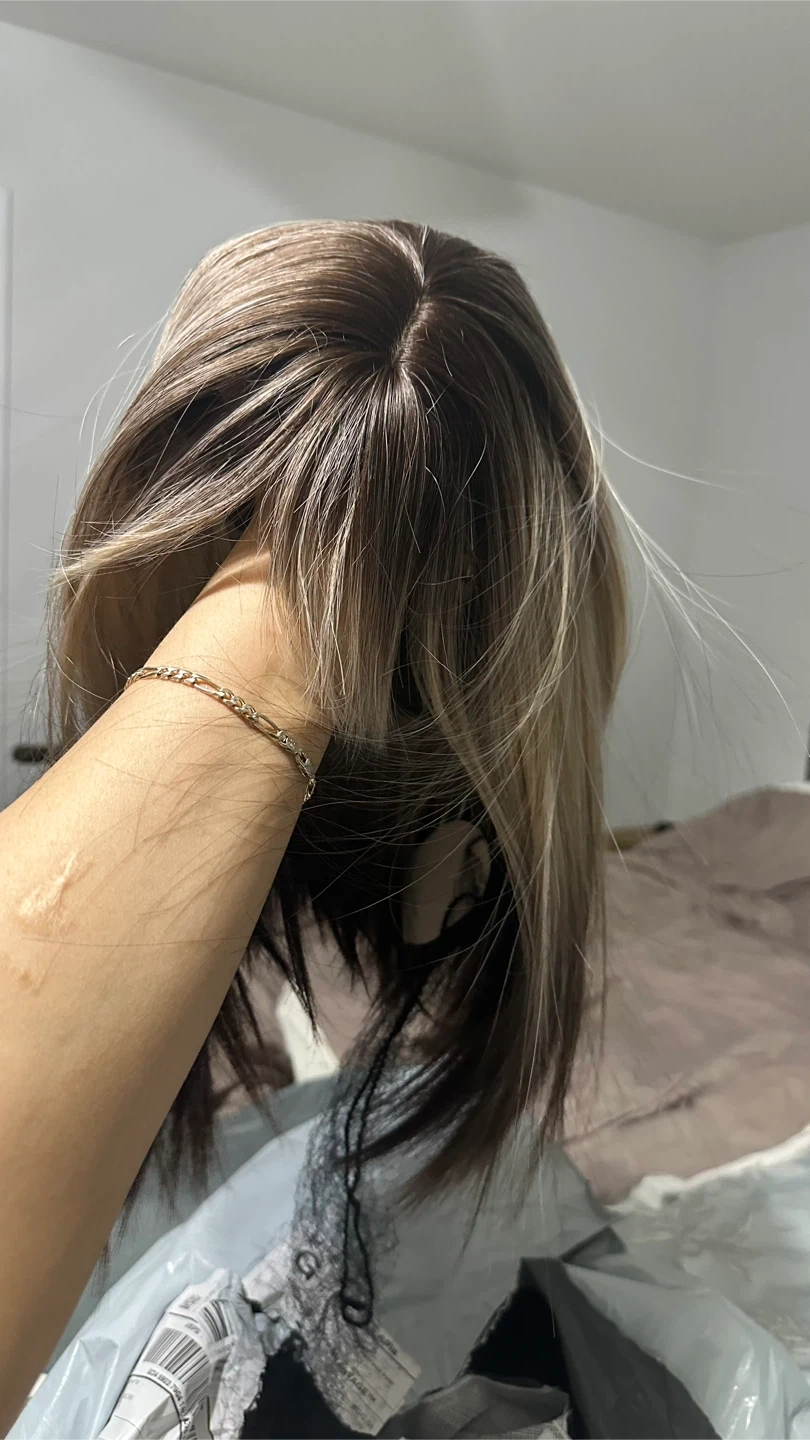 Selling a blonde ombre short bob wig. It's in great condition and ready for a new home! The wig features a stylish ombre effect, transitioning from dark roots to light blonde ends. Perfect for a quick and easy hairstyle change!