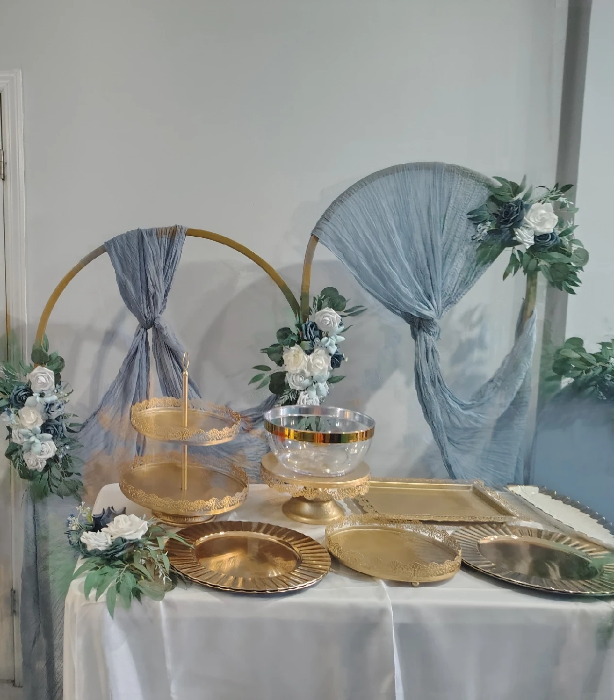 44π₯ I am in. Selling a set of decorative serving trays and stands in gold. Perfect for adding a touch of elegance to any occasion or event! Includes a variety of shapes and sizes.