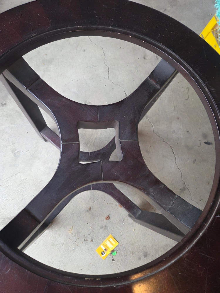 comes with a glass top (not pictured) some very light scratchs on glass top, not visible.