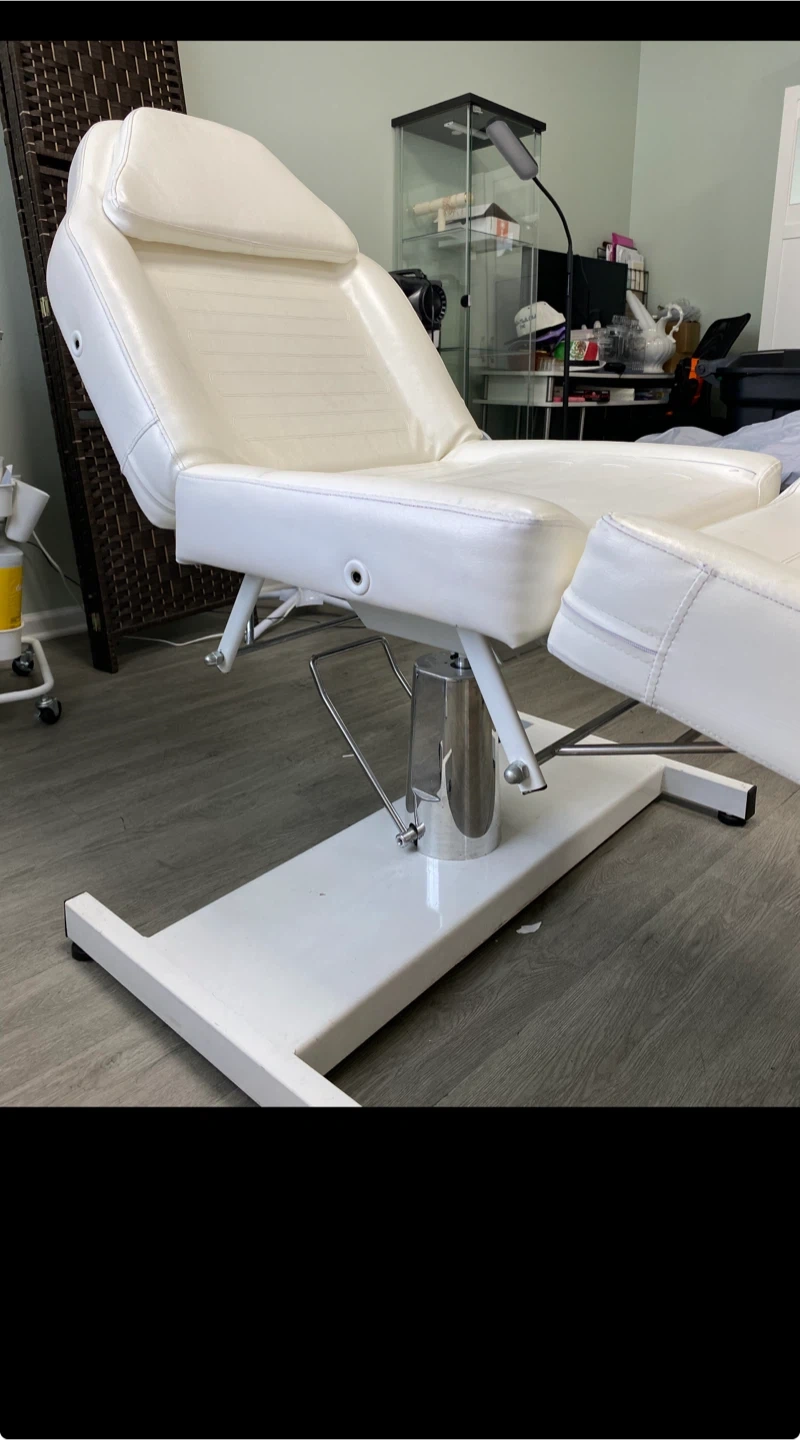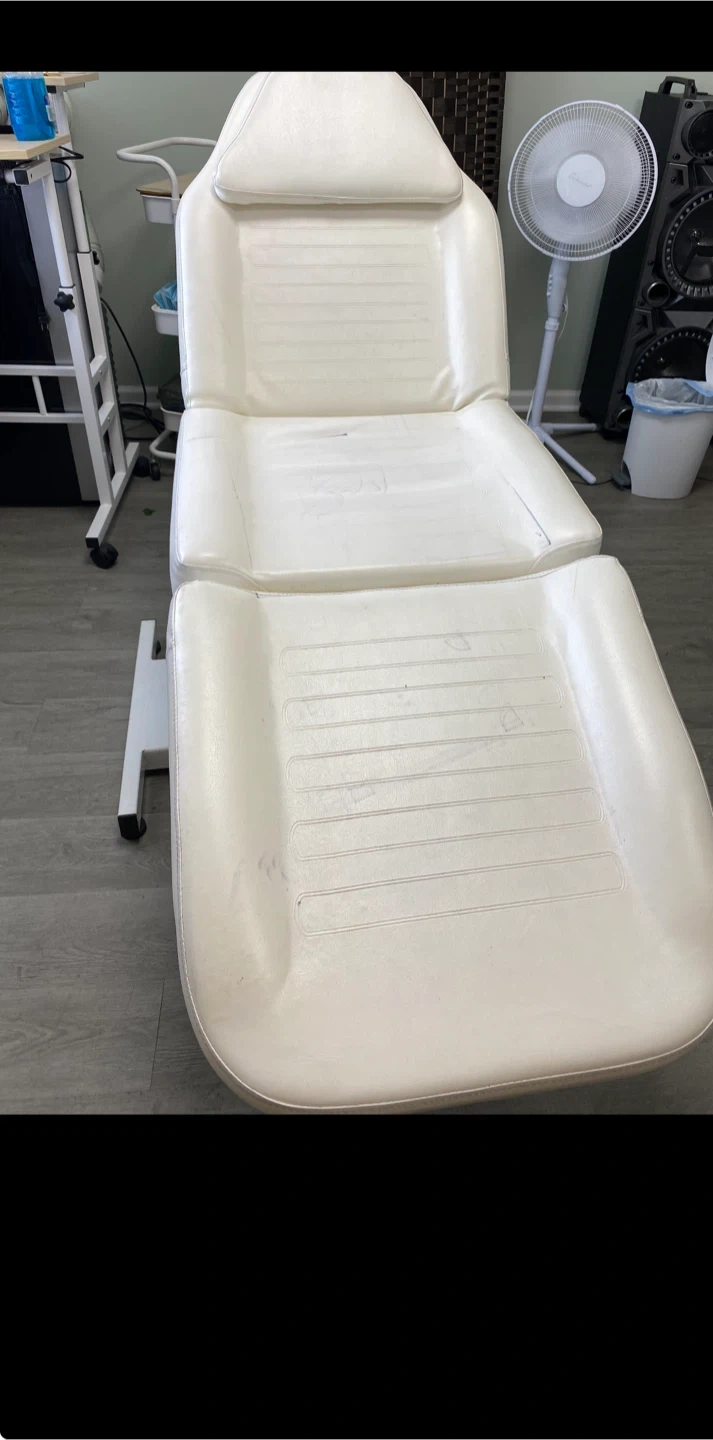 Selling a white adjustable spa bed! It's in good condition and ready for a new place. Perfect for spa or salon services!