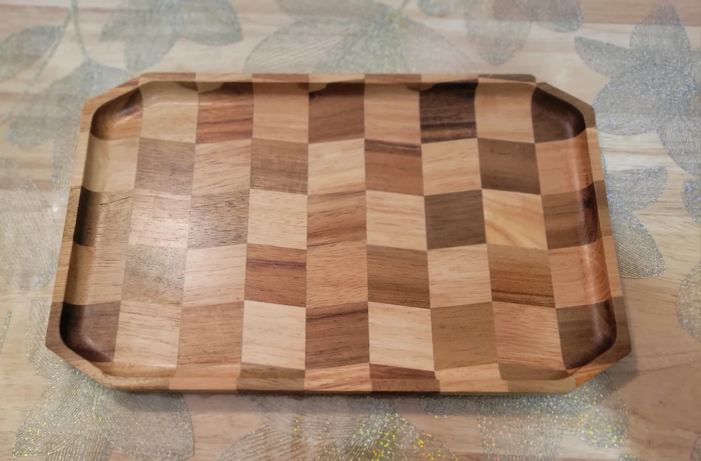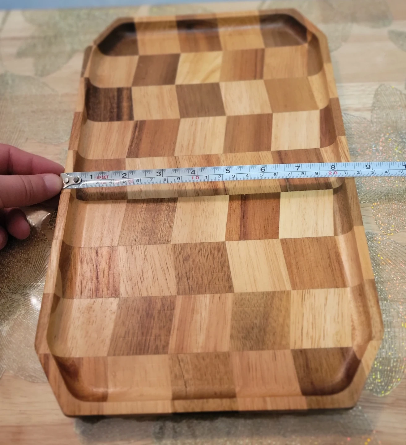 92Selling a wooden checkered tray! It measures about 13,5 inches in length and 8,5 inches in width. It's in great condition, like new