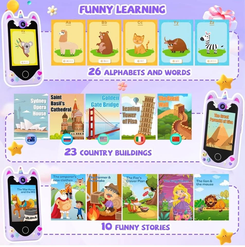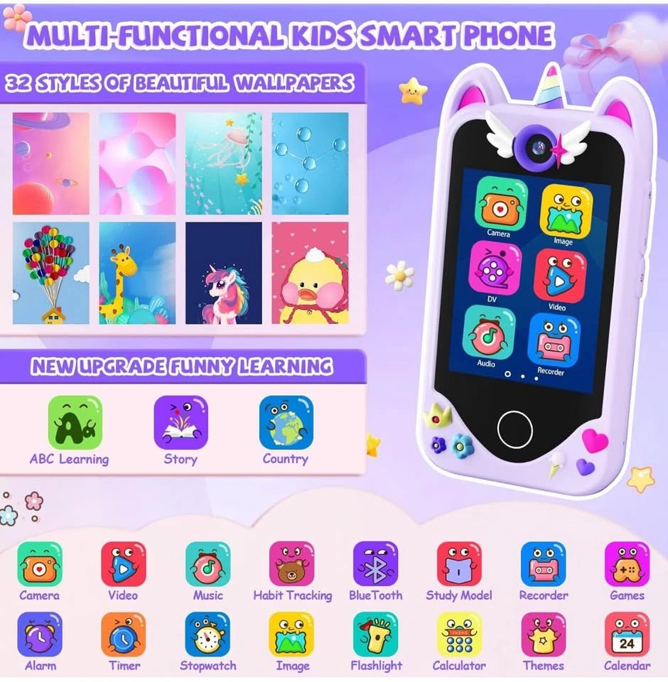 116Kids Smart Phone, Kids Cell Phone Toy, Kid Mp3 Player for Girls Gifts Toddler Christmas Birthday Gift for Age 3 4 5 6 Year Old with Touchscreen Dual Cameras Learning Games with 32 GB Card
