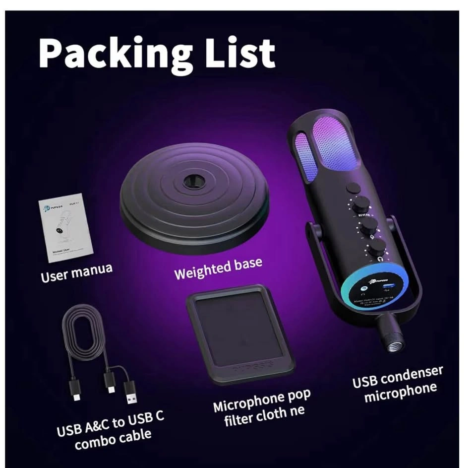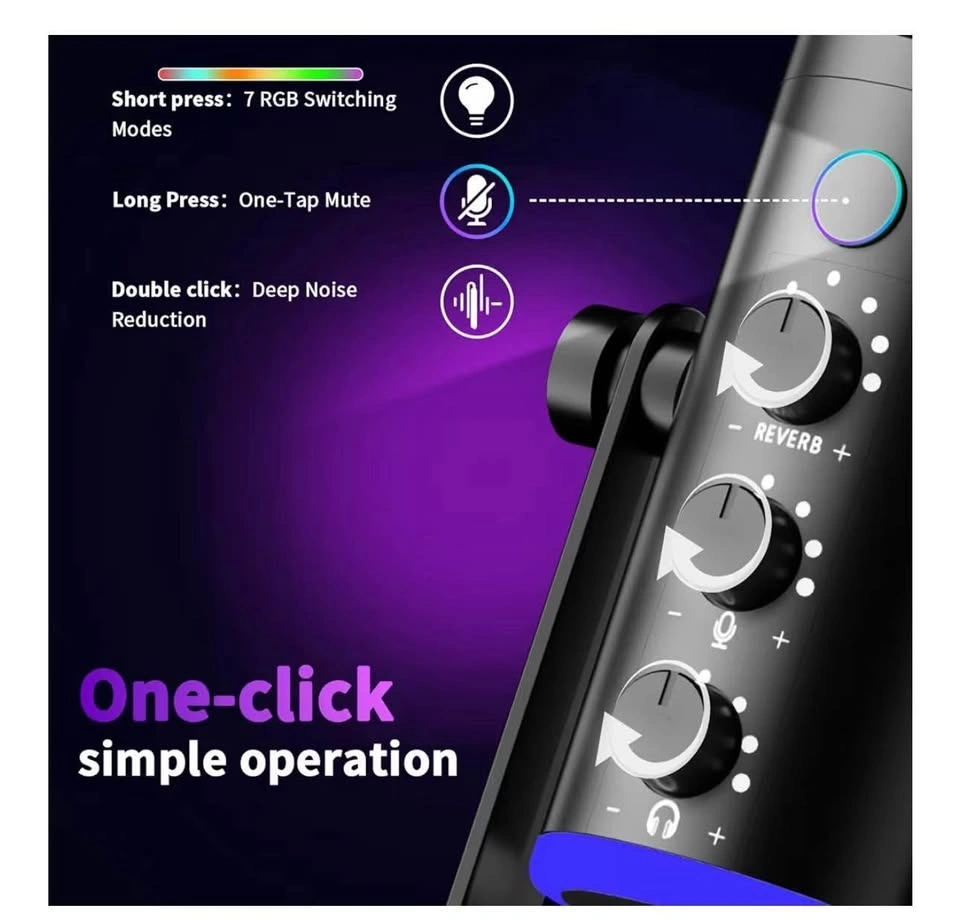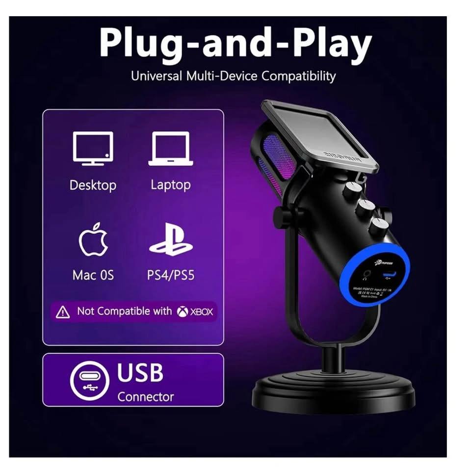 116Gaming Microphone for PC, Noise Cancellation Condenser Mic with RGB Lights, Mute, Monitoring, Pop Filter, Desktop-Mic for Streaming/Podcasting/Recording/Gaming Equipment, Plug & Play-Black
