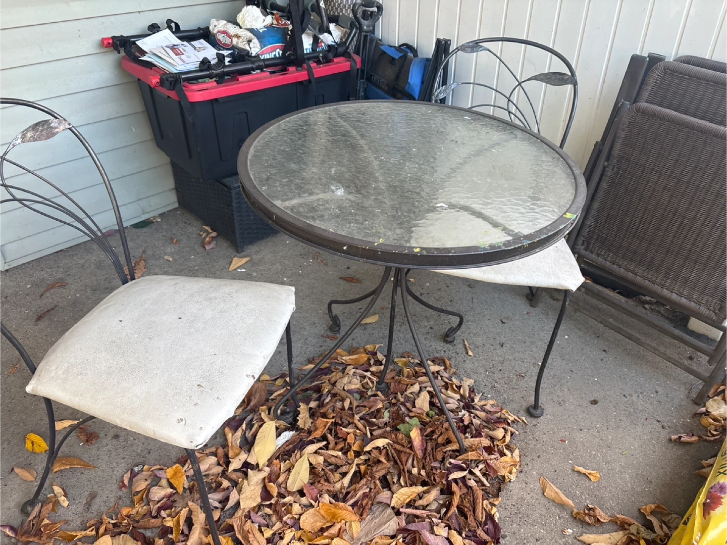 Glass and acrylic Dinning table with 4 chairs . Bar height