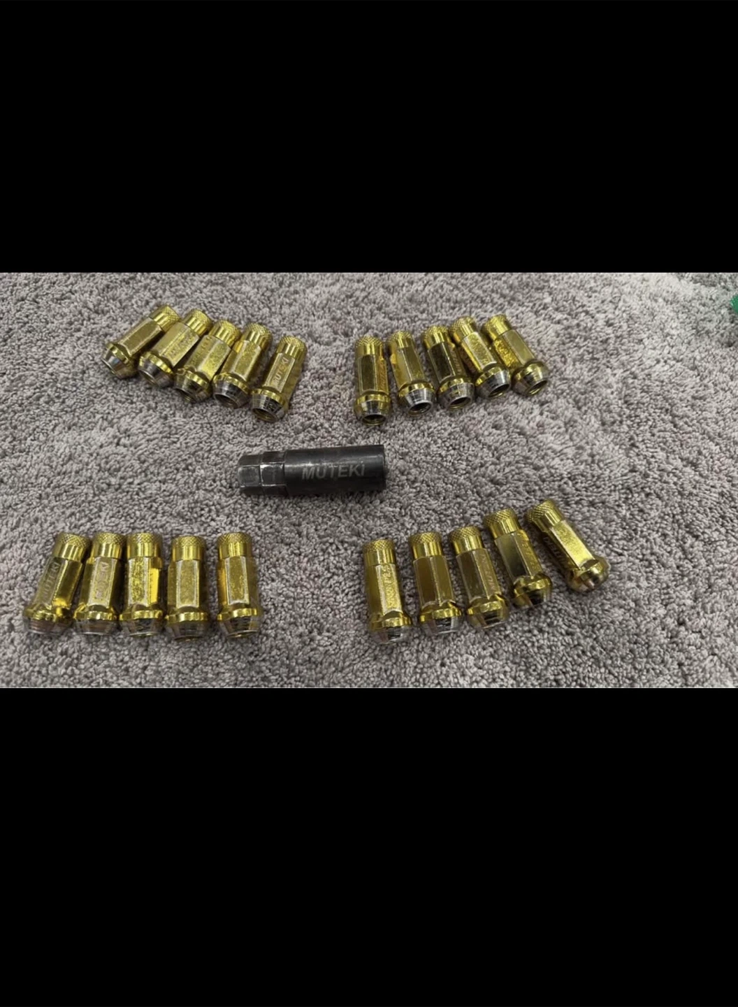 60Selling a set of Muteki lug nuts in gold color. They appear to be in good condition and ready for use! Specs are…12x1.5