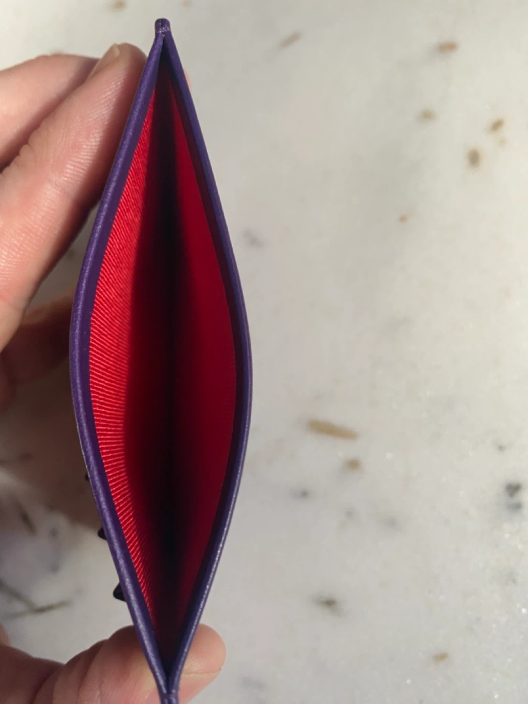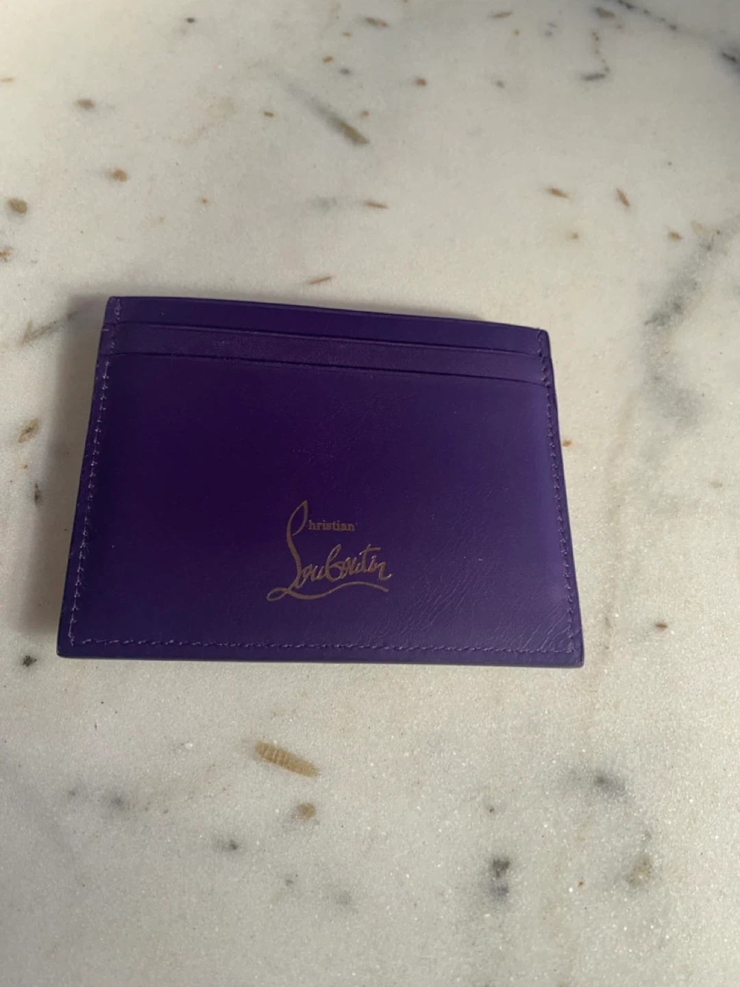 Selling a Christian Louboutin card holder in a beautiful purple color. It comes with its original box, care instructions, and dust bag. This stylish card holder is perfect for keeping your cards organized with a touch of luxury