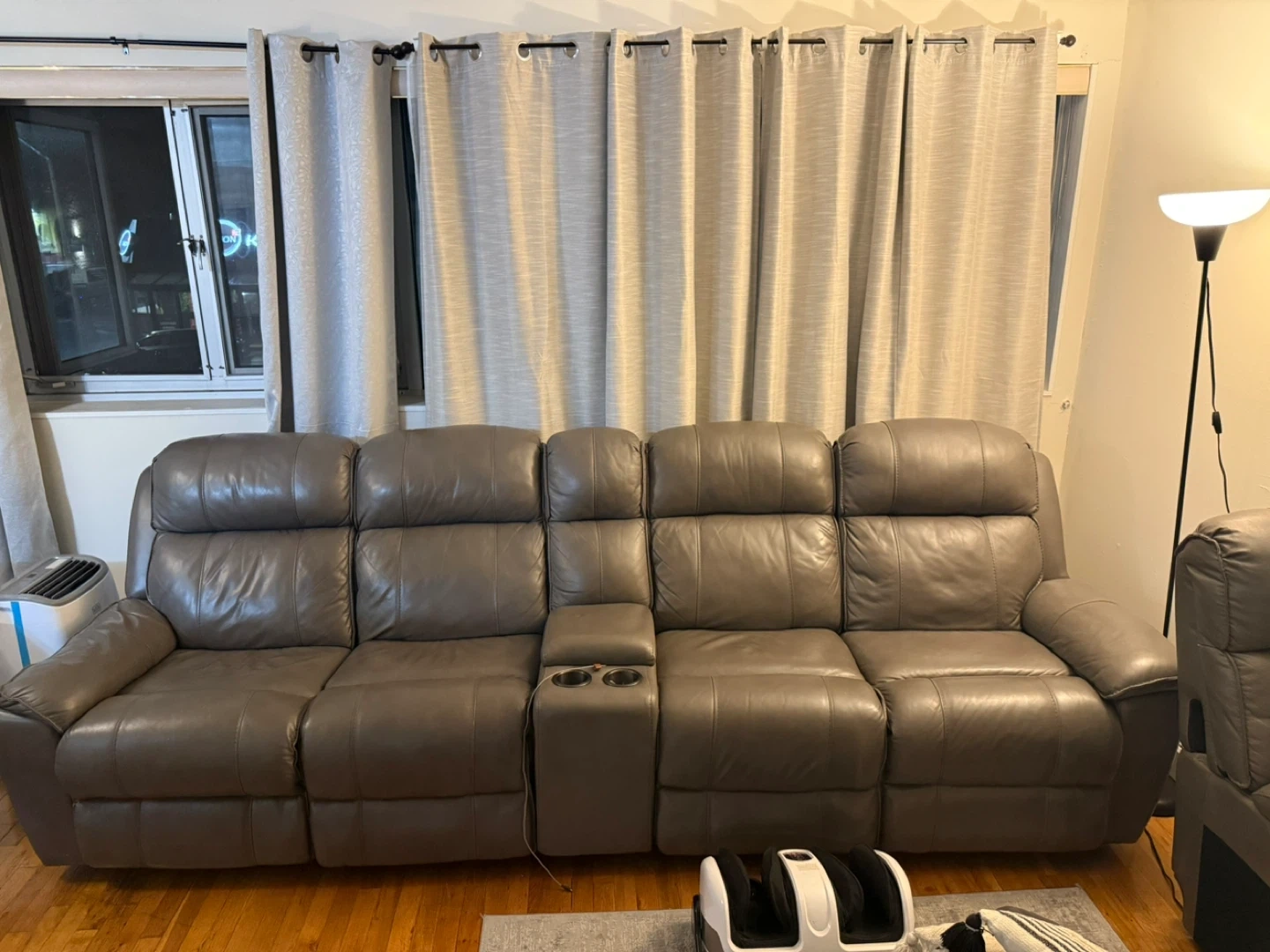 Comes with 2 center console with cup holders + storage, and an additional matching piece (can be placed or removed depending on layout).