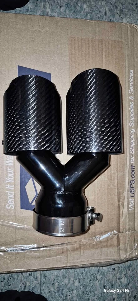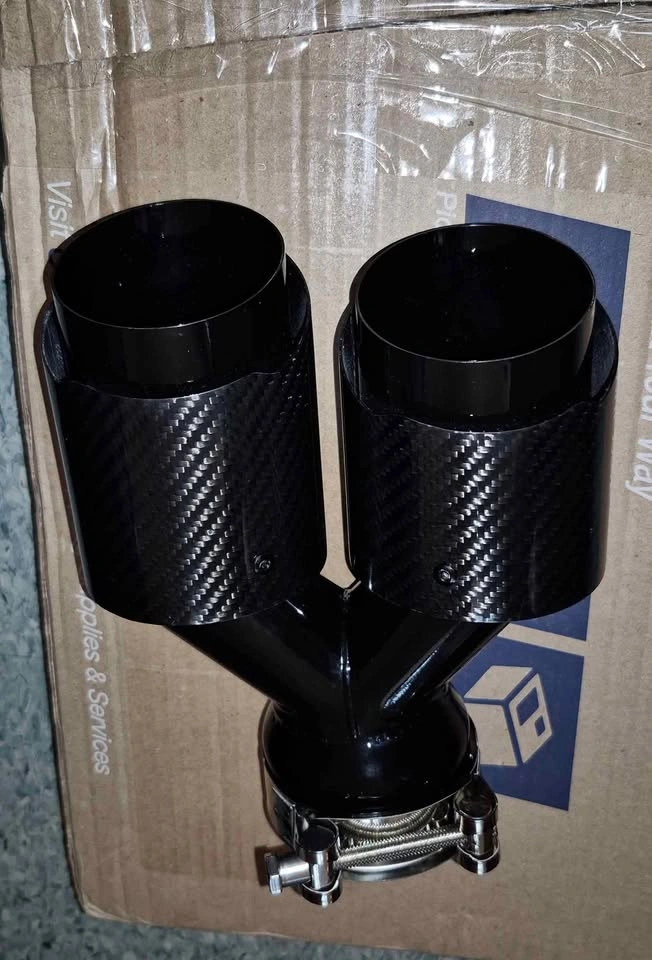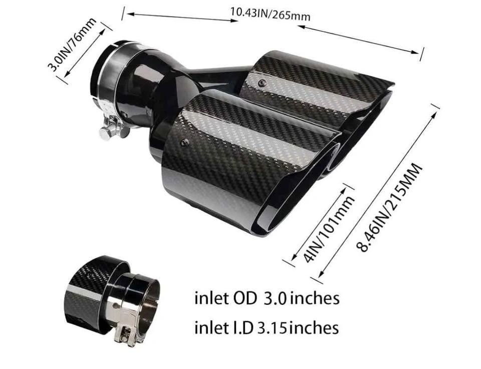10Dual Carbon Fiber Exhaust Tip 3" Inlet to Dual 4" Outlet Tailpipe tip Universal for Vehicles