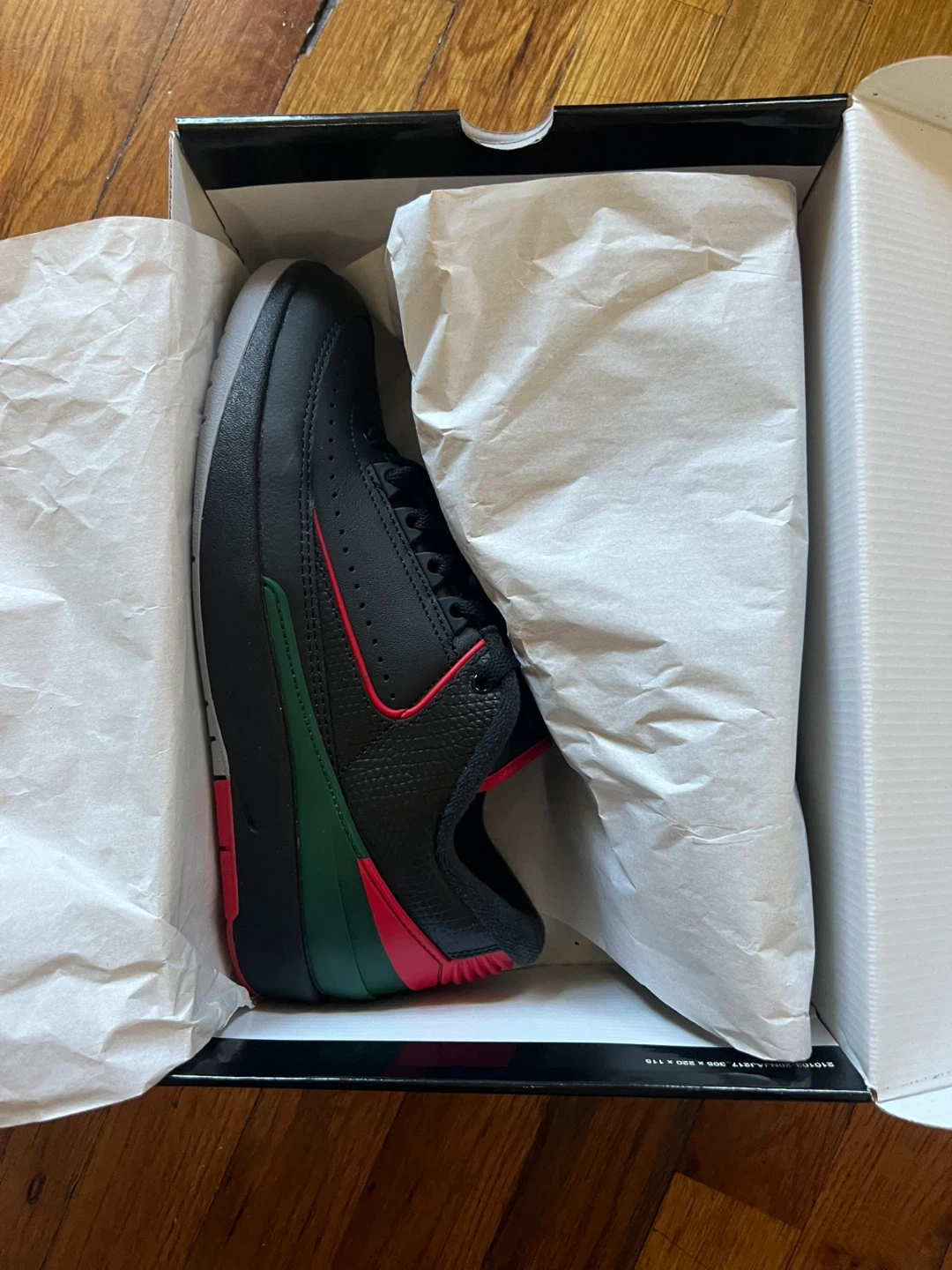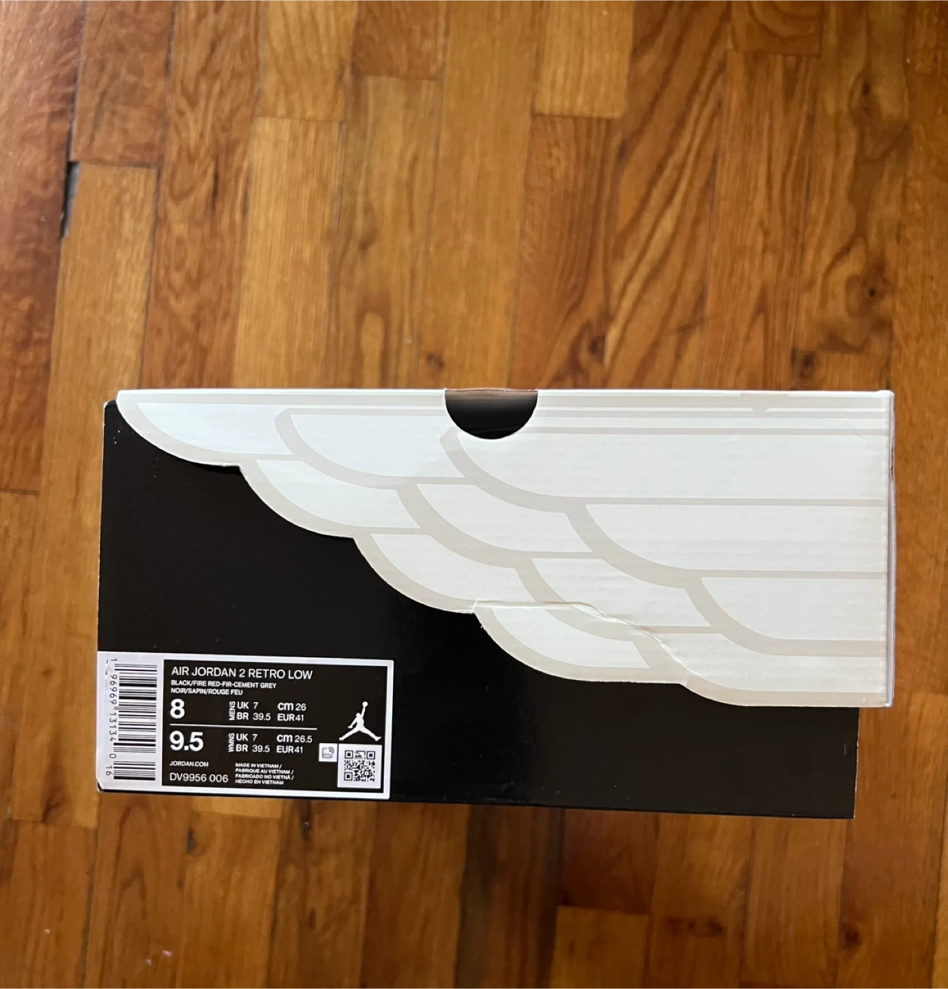 72Selling a pair of Air Jordan 2 Retro Low sneakers in black and fire red, size 8 US men's. The shoes come with the original box. Great for any Jordan fan!