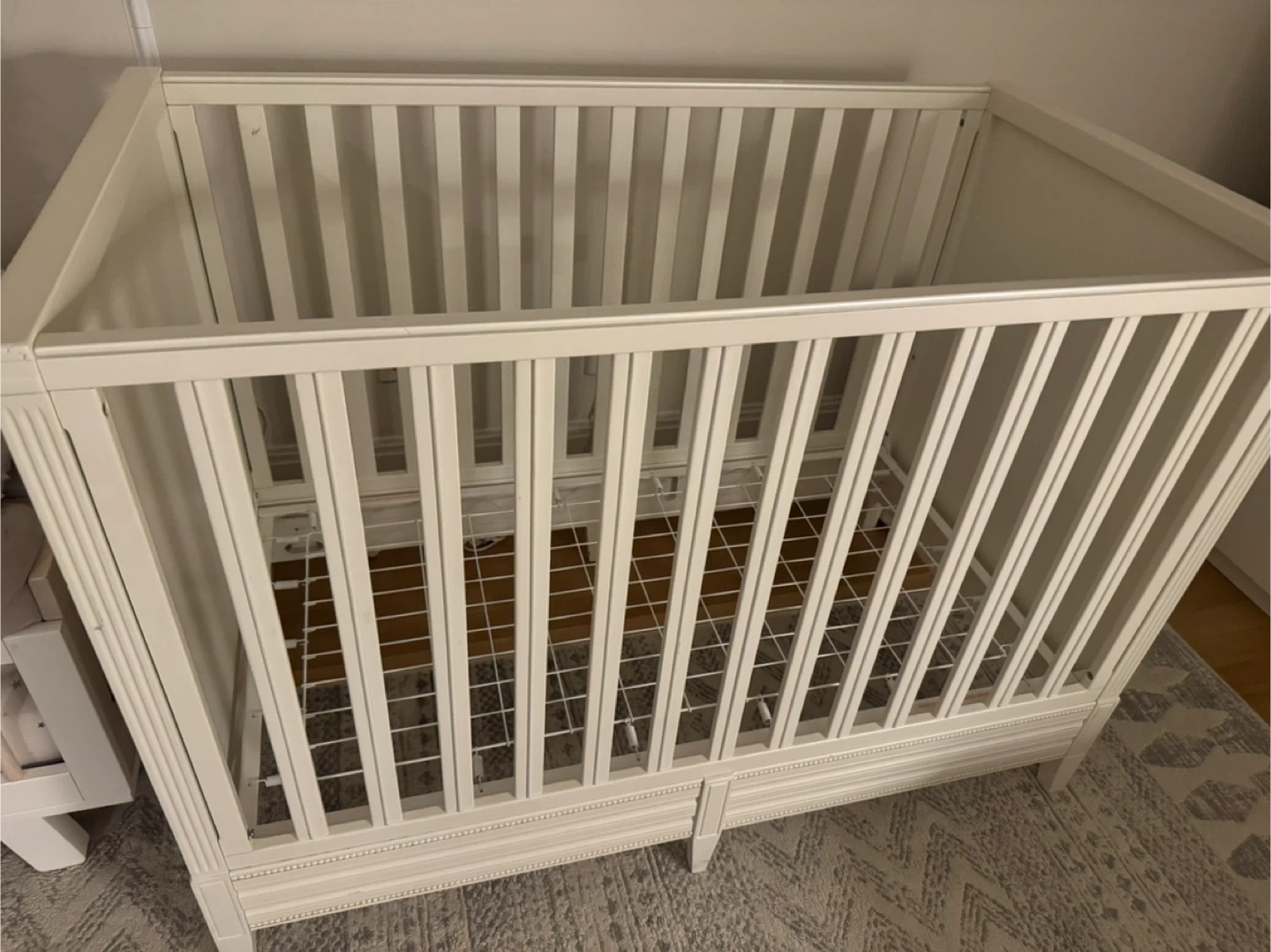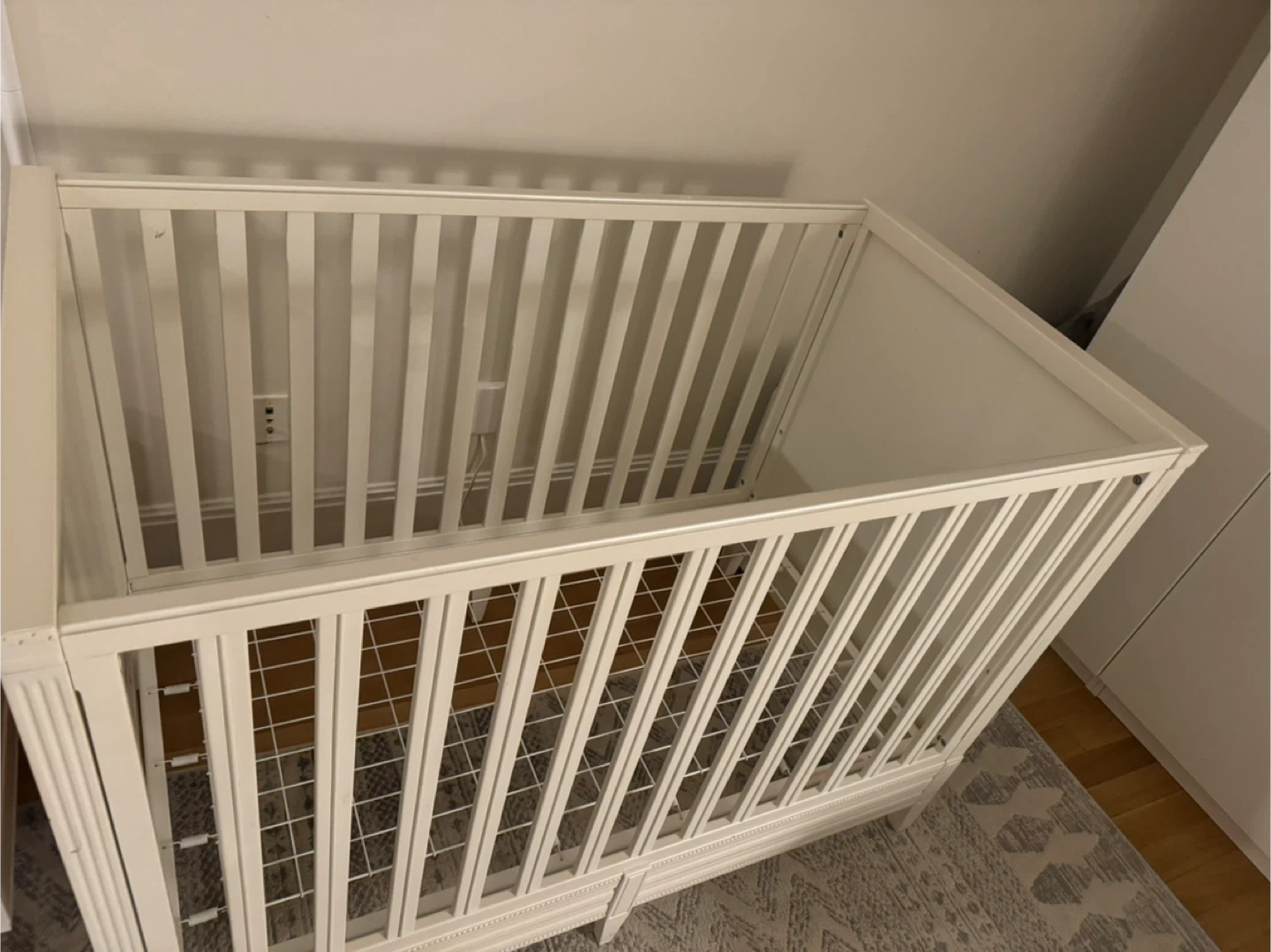 12Selling a baby crib in good condition. The crib is white and has a classic design that would look great in any nursery. It's sturdy and safe, ready for your little one!