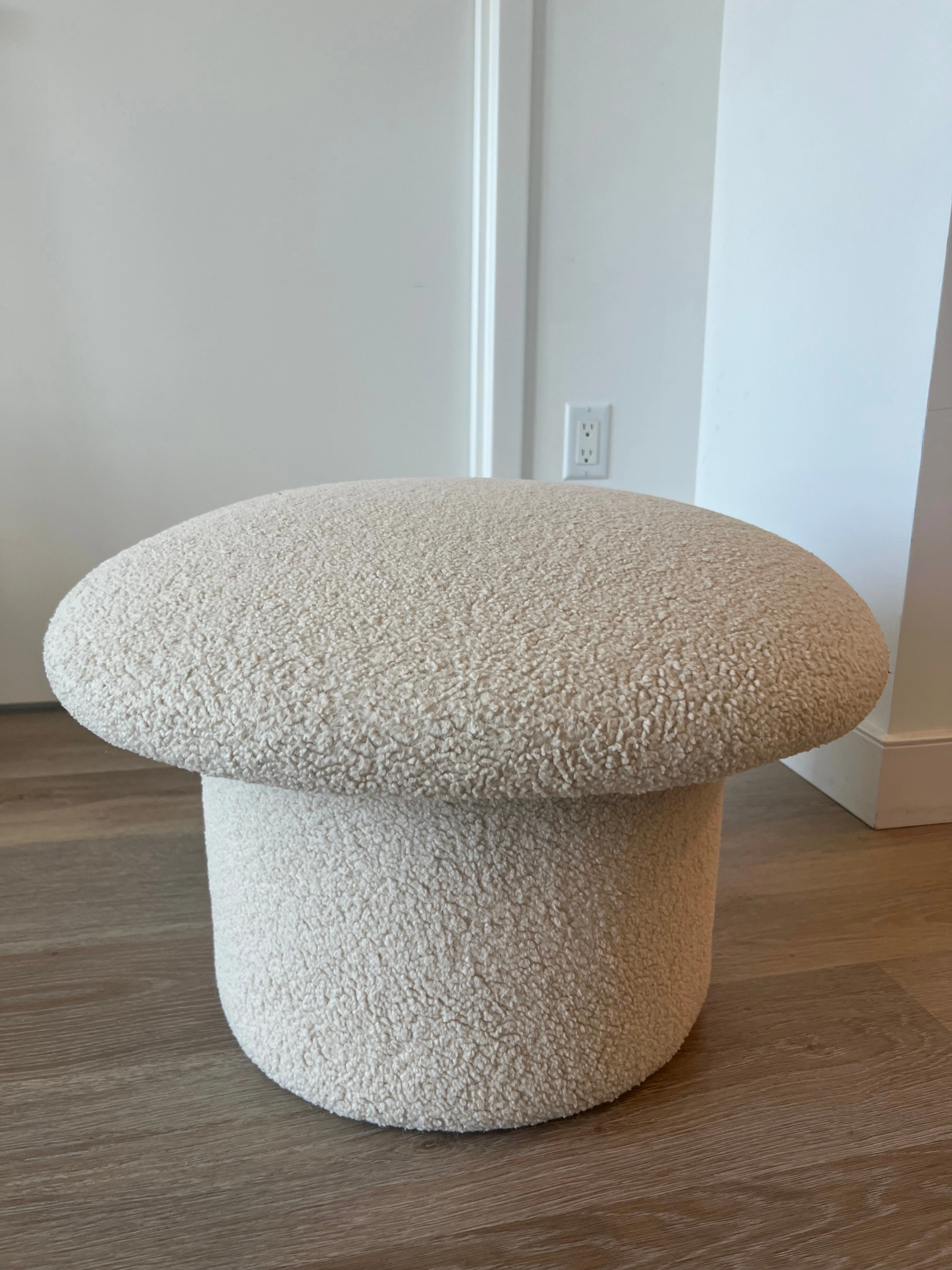 10Selling this quirky, adorable stool has a cylindrical base with a rounded circular top that resembles a mushroom. It's covered in boucle, soft, cream fabric for a cozy feel that brings a welcoming vibe to any space.