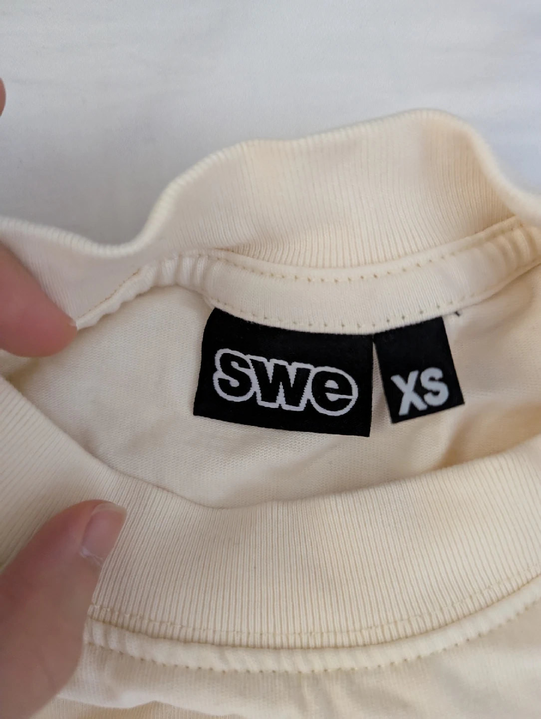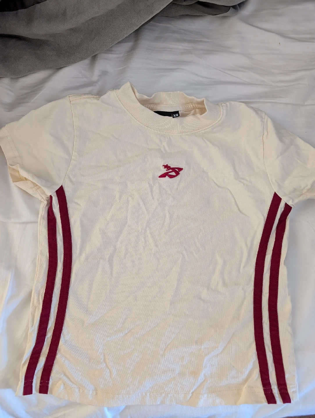 Selling a SWE 2BAR Baby Tee in red and cream! It's a size XS and in great condition. Originally bought for $23 USD. This tee is super cute and stylish! COLOR: RED MATERIAL: 100% COTTON SIZE: XS 2BAR BABY TEE - The new BABY TEE from SWE's "FOR THE YOUTH" collection, featuring a youthful and dynamic style. The highlight of the shirt is the finely embroidered new SWE logo at the center of the chest, along with lines running down both sides, creating a more striking and impressive look. The SWE t-shirt is made from 100% pure natural cotton with four-way stretch, weighing 250gsm, designed in the BABY TEE fit, ensuring you can fully trust the quality of SWE products. The fit is tailored to the general sizing standard of Vietnamese people. - Size XS: Height below 1.70m, weight below 60kg