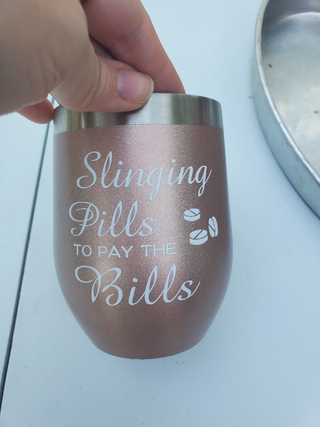 60I have a couple of fun custom tumblers here! One says 'Bachelorette Bash' and the other says 'Slinging Pills to Pay the Bills'