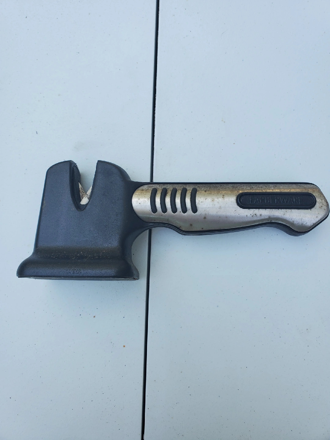 60Here is a Faberware knife sharpener. It has some signs of use.