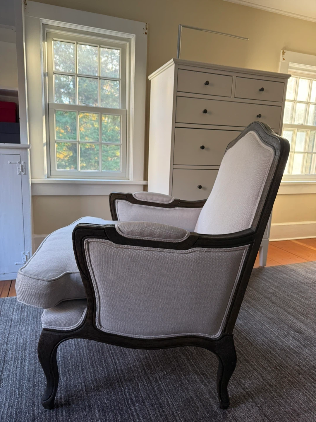 10Restoration Hardware (RH) Marseille Chair – Excellent Condition This beautiful RH Marseille Chair combines timeless elegance with exceptional comfort. Purchased in 2019 and gently used, it remains in excellent, like-new condition — extremely clean, no stains, no damage, and from a pet-free, smoke-free home. The chair features solid wood framing with a rich dark brown finish and premium upholstery in a light linen tone, offering both luxury and durability. Its deep seat and plush cushion make it exceptionally comfortable for lounging or reading. I’m reluctantly letting it go only because I’m moving — this has been one of my favorite pieces, and I truly hope it finds a new home where it will be loved just as much. • Brand: Restoration Hardware • Model: Marseille Chair (SKU: 400926) • Color: Light linen with dark brown wood frame • Condition: Excellent, barely used • Original Purchase Date: June 2019 • Made by: LF Products (Compliant with US EPA TSCA Title VI) Pick-up in North Stamford.